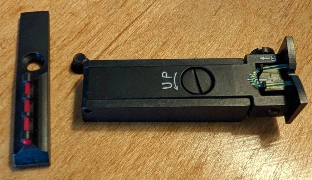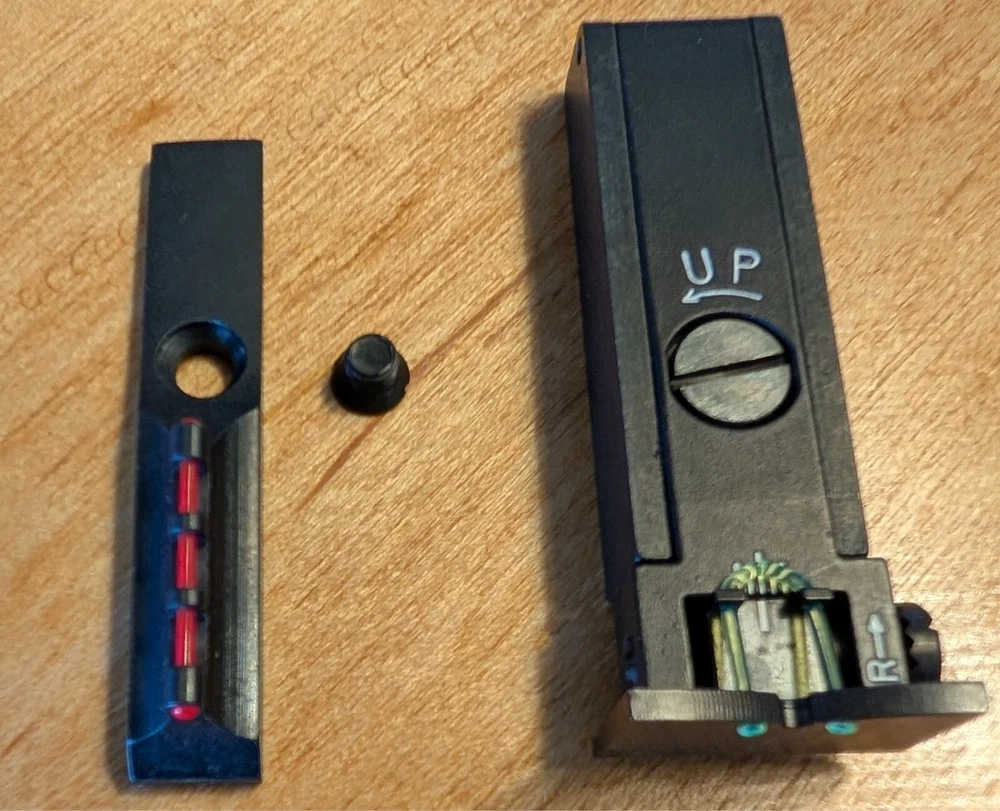 The sights were on my Thompson Center Enore Endeavor. Never been used. I had them taken off by a professional Gun shop and they mounted a scope on my gun for me. They are in excellent condition and all screws are there for mounting. Thanks for looking!! I will be putting other auctions up as I have retired from hunting, just getting up there in age!