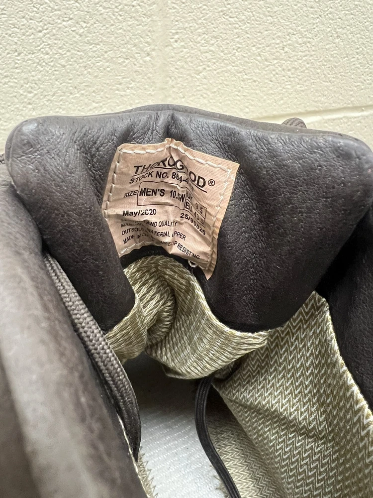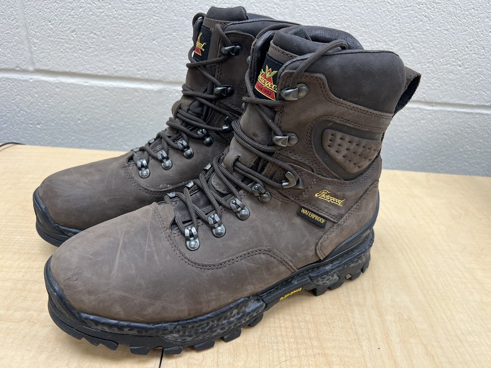 Features: Waterproof Upper Material: Leather Type: Boot Color: Brown Model: Thorogood Infinity FD Brand: Thorogood Shoe Width: W Heel Height: Low (3/4 in to 1 1/2 in) Style: Work & Safety Department: Men US Shoe Size: 10.5