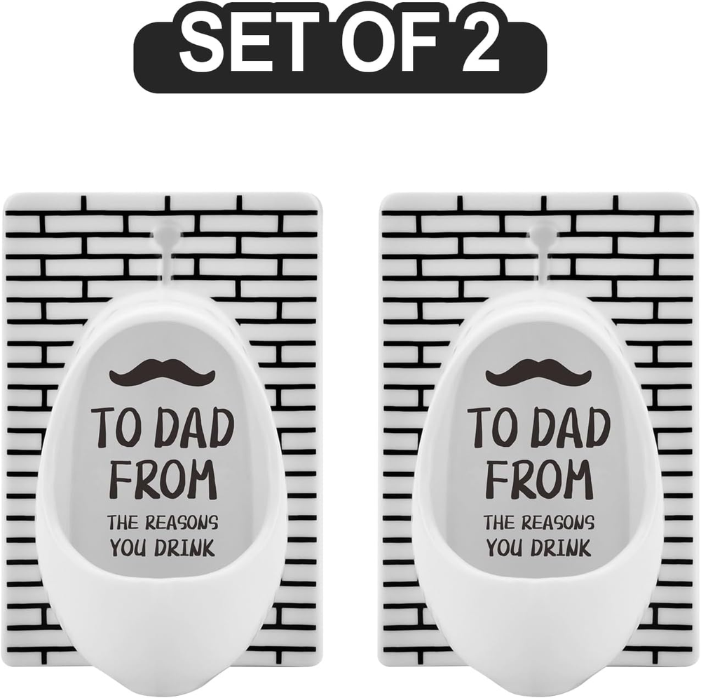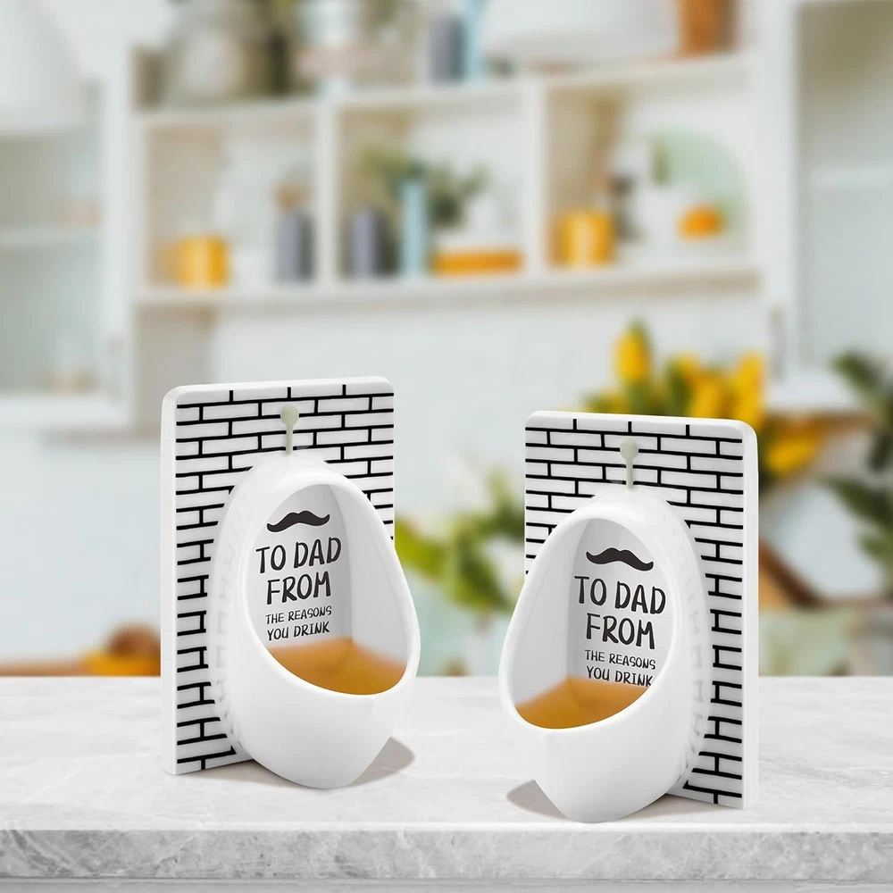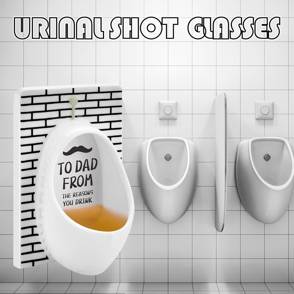 Fathers Day Dad Gifts for Dad: Include set of 2 urinal shot glasses, made of ceramic, durable. White Elephant Gifts: Designed with the shape of a mini urinal, 2.63in*4in. These funny gifts shot glasses are the secret santa gifts for Christmas party, White Elephant party or any day which is special for you. Easy Clean: Easy to clean, can wash in the dishwasher. Novelty Gag Gifts for Men Shot Glasses: This pair of urinal shot glasses novelty and unique design is sure to bring smile and catching your family members off-guard with this funny gifts at the party. Perfect Funny Gifts Stocking Stuffers: Perfect as funny adult gag gifts, white elephant gifts, Santa Christmas party, birthday gifts. Product Description Fathers Day Dad Gifts Urinal Shot Glasses This pair of urinal shot glasses novelty and unique design is sure to bring smile and catching your family members off-guard with this funny gifts at the party. FATHERS DAY GIFTS FOR DAD Made of ceramic Shape like ceramic urinal SET OF 2 FUNNY GAG GIFTS Include set of 2 urinal shot glasses As father's day gifts for dad from daughter or son or wife GIFTS FOR MEN DAD Hold whiskey, vodka, tequila, liqueur and beer etc. Perfect as fathers day gifts, dad husband gifts, funny adult gag gifts, white elephant gifts, party, Christmas stocking stuffers and birthday gifts