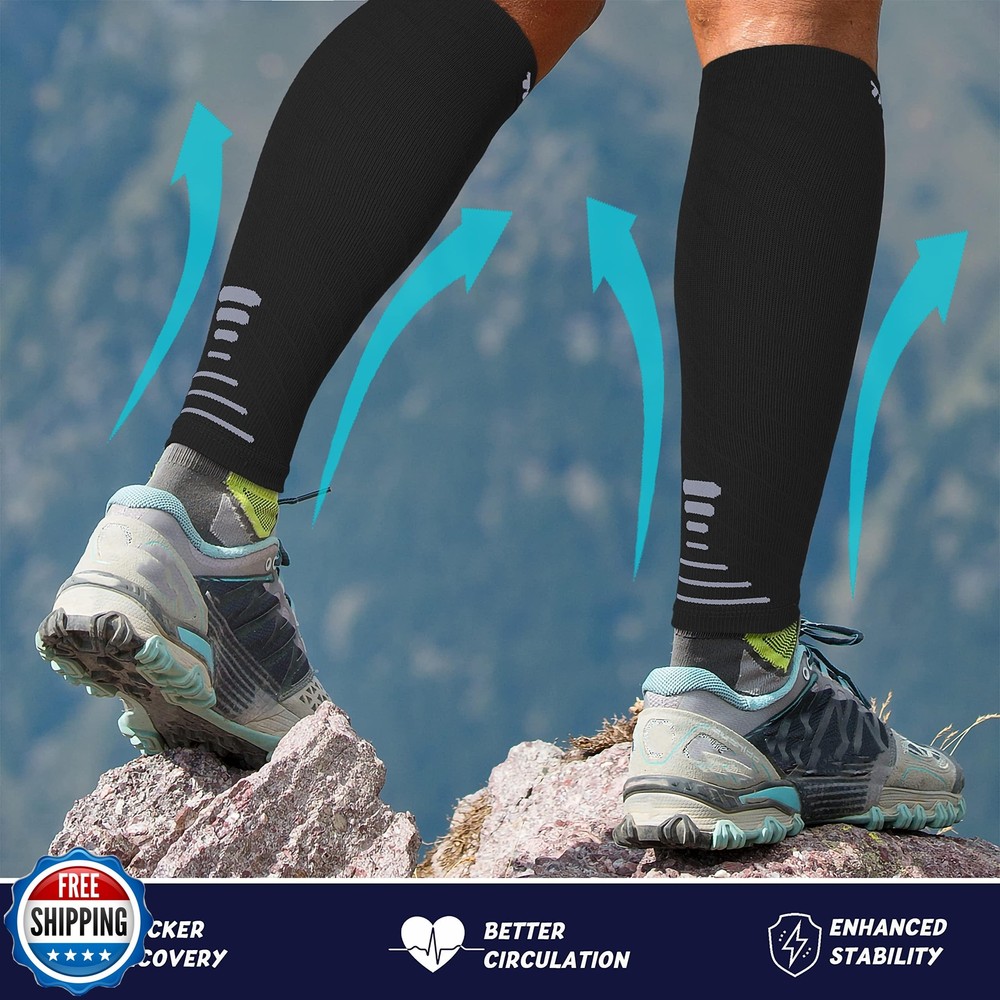 These calf compression sleeves are a game-changer! Snug yet comfortable, they provide excellent support for running and recovery. The compression feels just right—enough to improve circulation and reduce swelling without being too tight. They stay in place during workouts and help with shin splints and muscle fatigue. The black/gray design looks sleek, and the material is breathable—no sweating or slipping. Perfect for active lifestyles or anyone needing leg relief. Highly recommend!