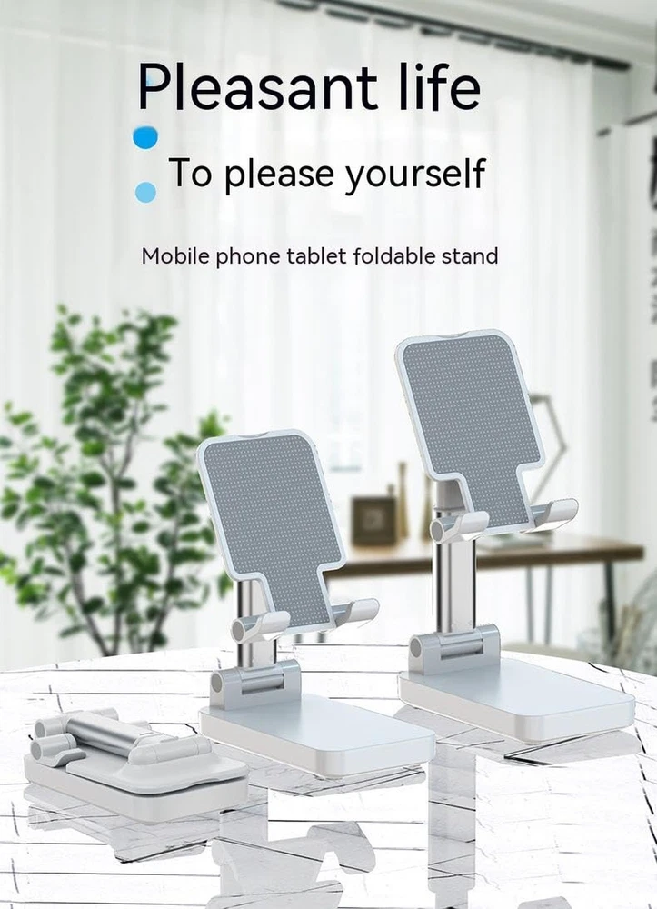 Love this stand! It keeps my phone secure at the perfect angle for watching videos or video calls. The foldable design is super convenient, and it works with all my devices—iPhone, iPad, even my friend's Android! Sturdy yet lightweight, it fits anywhere on my desk without taking up space. The white color looks sleek and clean. Highly recommend for anyone needing a reliable phone holder!