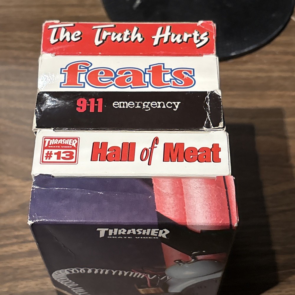Dive into the gritty world of skateboarding with the Thrasher Magazine Skateboard Video Lot, featuring issues 1-5-6-13-16. This collection is a raw and rare find for enthusiasts looking to experience the origins of extreme sports through the lens of one of the most iconic publications in the skateboarding genre. Each tape in this lot captures the essence of the Thrasher Feats series, offering viewers an exclusive glimpse into the daring antics and skilled maneuvers of the skateboarders who defined a generation. Whether you're a long-time fan or a newcomer to the culture, these VHS tapes are a must-have addition to your collection.