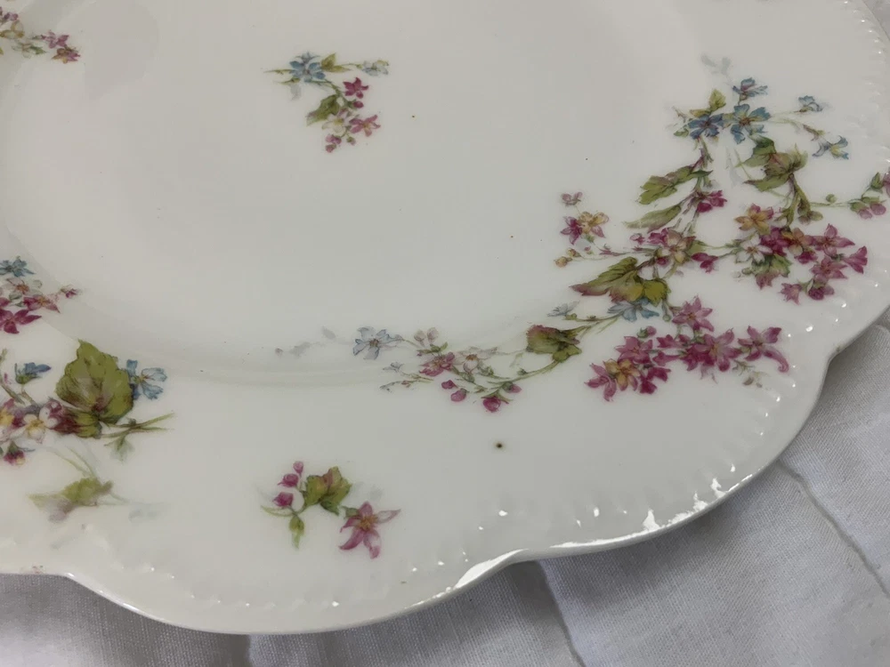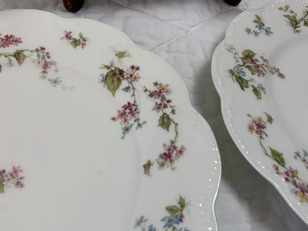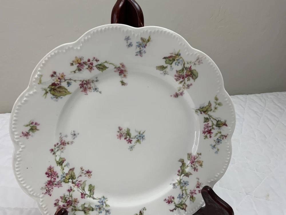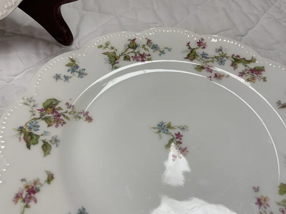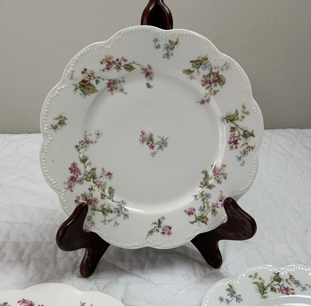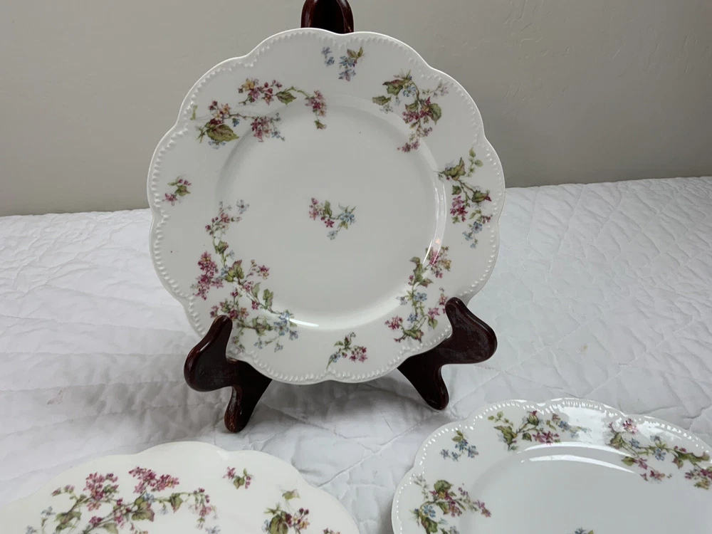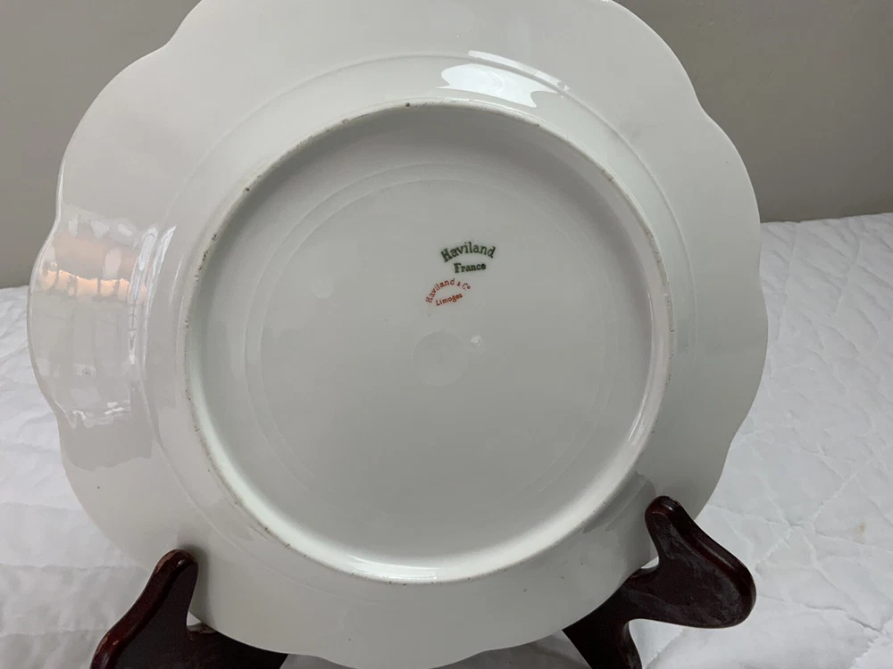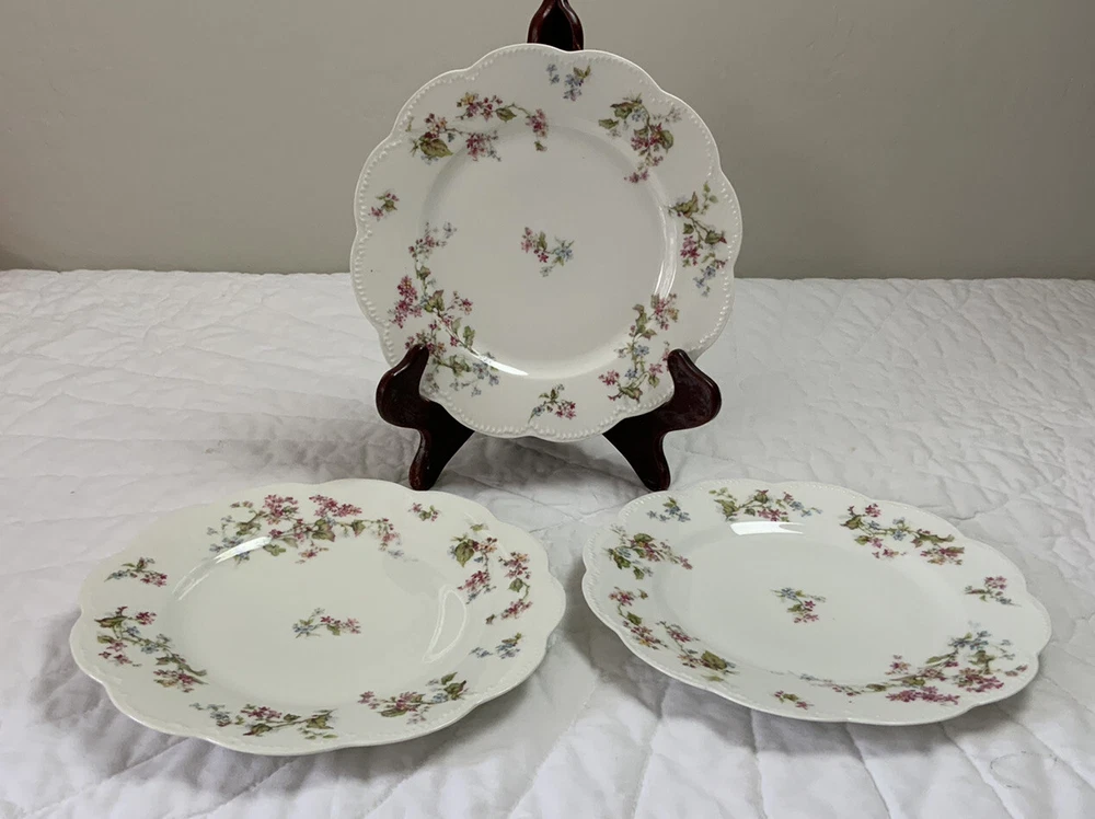 Up for sale is a set of three Haviland Limoges dinner plates. Antique plates made in France. Signed on the back Haviland France Limoges. The design is floral. Very pretty, very delicate design. The colors are off white, blue, green, yellow. Scalloped, dot edges. Measures 9 3/4โ round. In diameter. Hand painted. Made in France. Antique plates. Set of 3. Very, very good condition. One very slight spot of roughness, about the size of a pinhead. No chips, no cracks, no hairlines. Thank you and happy bidding. I will combine shipping charges. Smoke free home. Please make payment in three days. ~~~~Please visit my eBay store: webbsamericancountry1๐บ๐ธ for over 2000 vintage and collectible items.~~~~๐บ๐ผ๐น