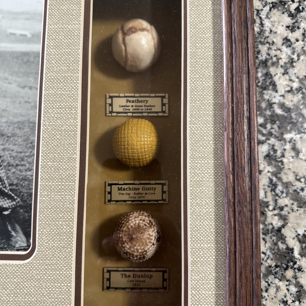 The product is a unique Three Stooges golf ball memorabilia frame by National Golf Classics. Measuring 15”x13”x2.5”, the frame features a charming design that pays homage to the iconic comedy trio while also celebrating the sport of golf. This distinctive piece would make a fun and nostalgic addition to any golf enthusiast's collection, showcasing a blend of comedy and golf in a creative and eye-catching way.