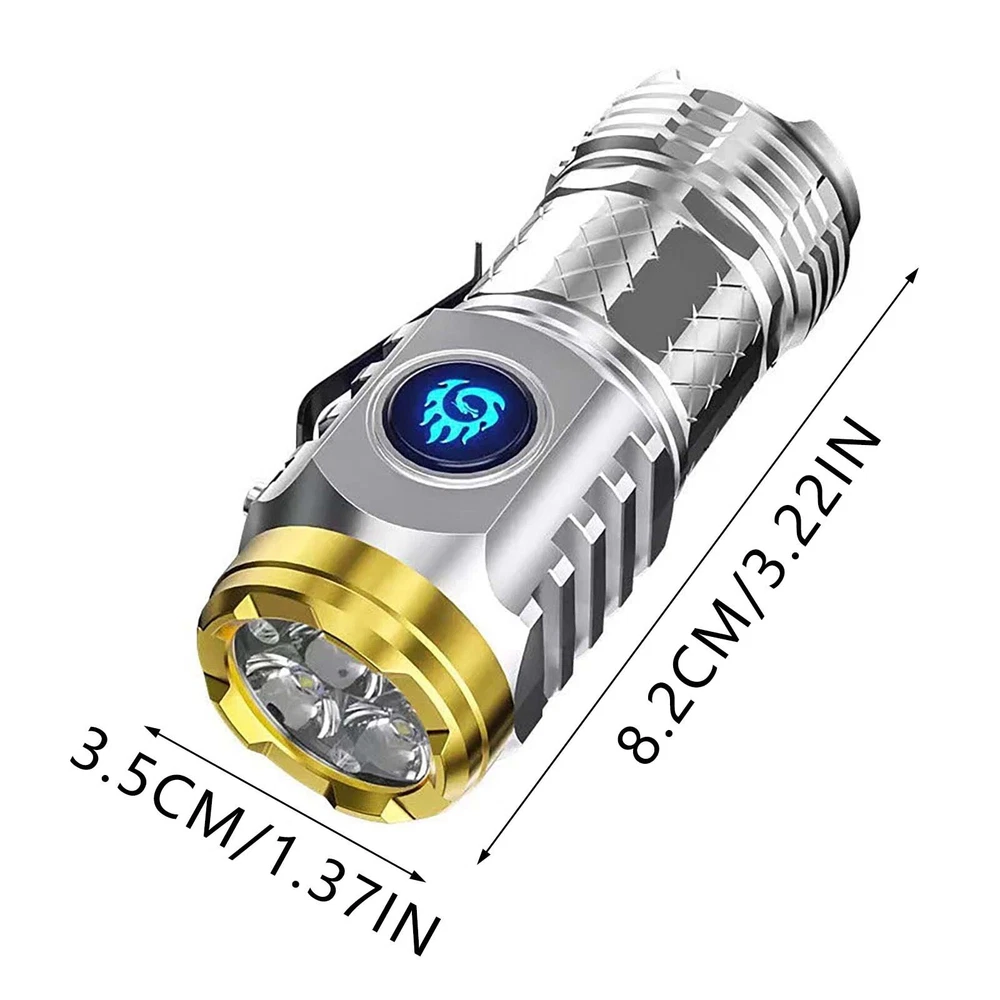 Product Description: Mini flashlight,Mini Flashlight,Rechargeable LED Flashlights High Lumens,5 Lighting Modes,Flashlights for Home/Camping 🌟 [Mini flashlight] The Concentrated Power Of Three High-Brightness Led Cores, Coupled With A Frog-Eye Lens, Produces Remarkable And Focused Lighting. The Ingenious Central One-Key Smart Switch Allows Effortless Control Over Brightness Levels. 🌟 [Strong Beam] Compared With Other Powered Led Rechargeable Flashlights, Our Flashlights Chip Has A Longer Range, Clearer Edges, Stronger Beam, No Annoying Grid Lines, Clearer Field Of View, And Is More Suitable For Activities Such As Field Searching And Patrolling 🌟 [Long-Lasting Performance & True Capacity Battery] --Utilizing An Internal 18350 Lithium Battery With Genuine Capacity, The Mini Flashlight Delivers Powerful And Enduring Brightness. --The Type-C Fast Charging Interface Ensures Quick Recharging, While The Built-In Intelligent Chip Protects The Battery, Balancing Fast Charging With Extended Battery Life. 🌟 [Sealed Waterproof Design & Robust Construction] --The Fully Sealed And Waterproof Body Protects The Internal Circuitry, Allowing The Flashlight To Withstand Rain And Adverse Weather Conditions. --Its High-Strength, Anti-Drop Body Ensures Durability, Making It Resistant To Impacts, Abrasions, And The Challenges Of Everyday Use. 🌟 [Multi-Mode Adjustment & Compact Design] --Equipped With A Five-Mode Design For Versatile Lighting, The Mini Flashlight Features Three High-Brightness Led Cores Combined Into One. --The Compact And Lightweight Body Fits Easily Into Your Pocket Or Bag, Making It Convenient For On-The-Go Use. SPECIFICATIONS: Battery: Built-in 18350 lithium battery Charging method: Type-C charging Gear: strong/medium/weak/flash/SOS (5 Gear) Wick: 3 high-lumen lamp beads Power: 20w Accessories: USB charging cable Package Included: 1* Flashligh t 1*Charging Cable Notice: Please allow slight measurement deviation due to manual measurement. Due to the different monitor and light effects, the actual color of the item might be slightly different from the color shown in the pictures. On Oct 16, 2024 at 00:43:11 PDT, seller added the following information: