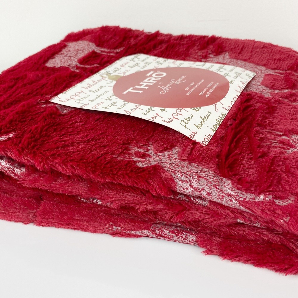 Pattern: Reindeer Features: Machine Washable Color: Red Room: Bedroom Care Instructions: Machine Wash Material: Polyester Size: 50 x 60 in Brand: THRO by Marlo Lorenz Type: Throw Blanket Theme: Holiday Shape: Rectangular
