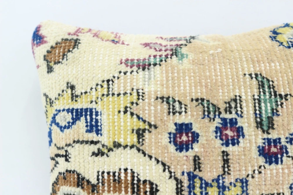 Throw Kilim Pillow, 14"x14" Beige Pillow Cover, Boho Pillow, Kilim Pillow