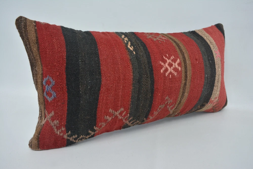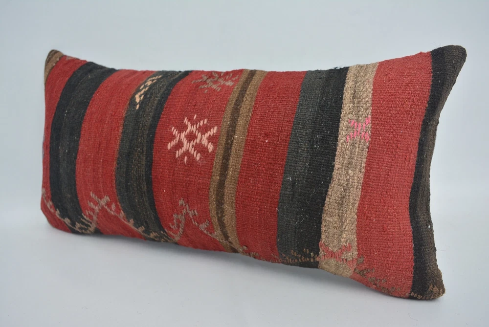 Throw Pillow Covers, Pillow for Couch, Kilim Pillow Cover, 12"x24" Red Cushion