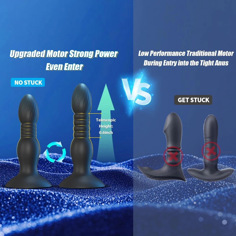 Thrusting Anal Butt Plug Dildo Vibrator Prostate Massager Sex Toys for Men Women <> <> <> Description: Experience the ultimate in prostate pleasure and anal stimulation with our Thrusting Prostate Massager. This advanced sex toy is designed for both men and women, offering a versatile and pleasurable experience. With 9 vibration modes and 9 thrusting actions, this massager provides a customizable experience for ultimate satisfaction . Key Features: 9 Vibrations and 9 Thrusting Modes: Equipped with two powerful motors, this prostate massager offers a range of sensations from gentle to intense, allowing you to customize your pleasure . Dual Stimulation: The massager is designed to stimulate both the prostate and perineum simultaneously, enhancing the overall experience . Body-Safe Materials: Crafted from premium silicone, ensuring a safe and comfortable experience for all users . Easy to Clean: The device can be easily sanitized with warm water and mild soap, ensuring hygienic use every time . Discreet Packaging: Your privacy is respected with discreet packaging for all orders . USB Rechargeable: Comes with a USB cable for convenient charging, ensuring you're always ready for use . Whisper-Quiet Operation: The device operates with minimal noise, allowing for discreet use . What's Included: 1 x Thrusting Prostate Massager 1 x USB Charging Cable 1 x User Manual Usage Tips: Apply a water-based lubricant for added comfort and ease of use . Experiment with different vibration and thrusting modes to find what suits your preference. Clean the massager after each use and let it dry completely before storing. Safety and Material: Made from non-toxic, hypoallergenic materials, suitable for those with sensitive skin . Order Now and Enhance Your Intimate Play! Please note that this product is intended for adults only and should be used responsibly and in accordance with the provided instructions Previous page Next page