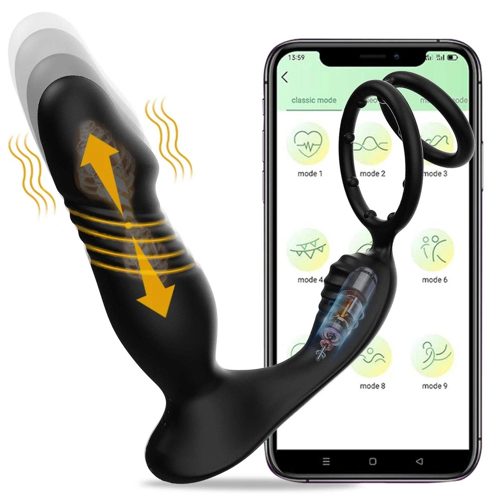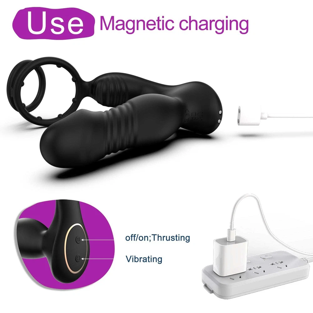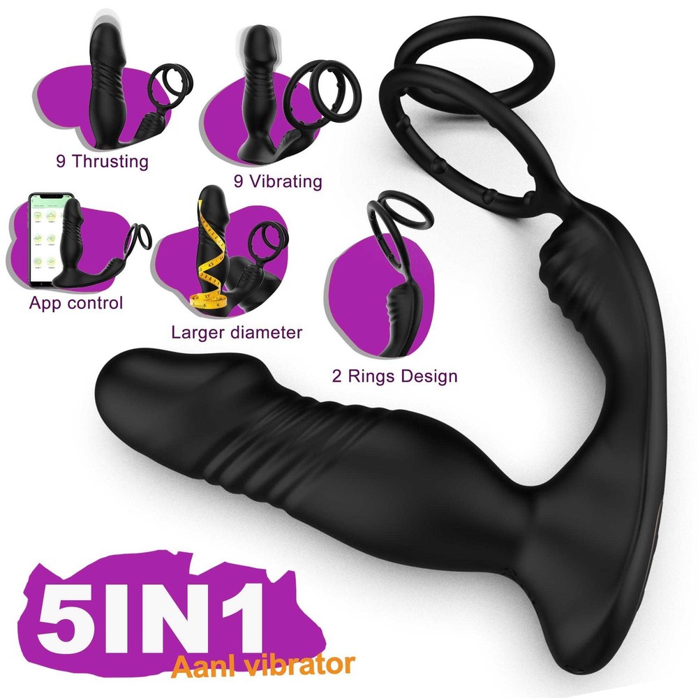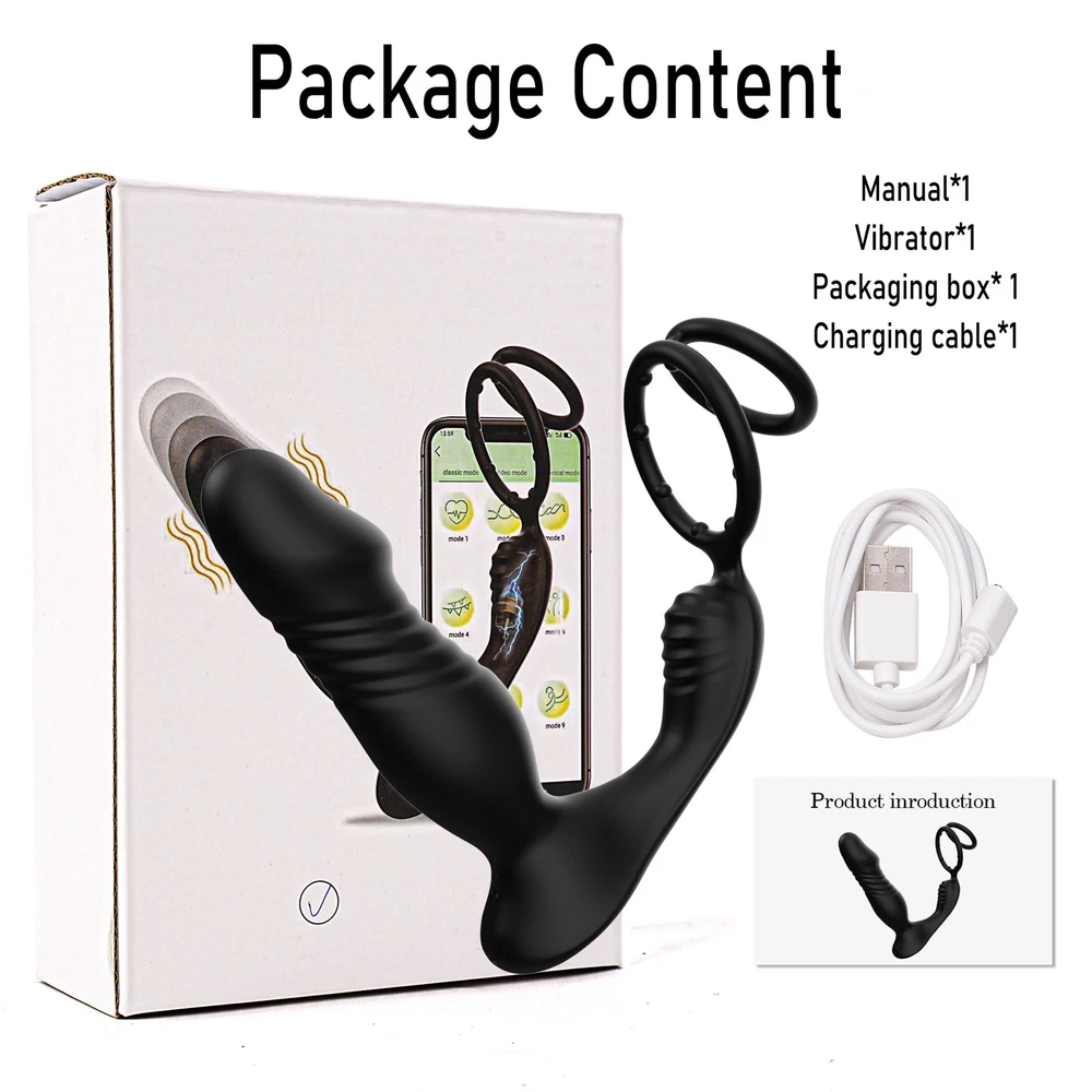 Male Thrusting Prostate Massager Vibrator Anal Butt Plug Dildo G-Spot Stimulate Sex Toys APP Control with Cock Ring US ❤ DISCREET PACKAGING - No senstive information on the box, avoiding unnecessary embarrassment,Your privacy is our priorit y - we will ship your package discreetly in an unmarked box(Your used id, name or information will only be available to us ,other buyer can't see) Features: 【5 IN 1 Anal Vibrator + Prostate Massager + Dual Ccock Ring】 This anal toy combine prostate massagger, anal vibrator, vibrating cock ring in one, the thrust dildo hit your P Spot and massages the prostate, the rippled base target vibrate the perineum, the soft cockring penis ring can exercises the dildos and prolong your excited. This male anal sex toys upgraded vibrating and thrusting rwill hit you P or G spot correctly. 【9 Stronger Vibrating & 9 Thrusting Modes】The dual motor design brings double the power, improving the problem of weak power of prostate massagers, giving you a variety of sensations to explore sex games 【Soft Silicone Prostate Vibrator】This thrusting prostate toy anal vibrator sex toy for men and women is silky smooth to fit the body, soft and sturdy, easy to clean. this prostate vibrator ensuring a comfortable and pleasurable experience, silky soft stretchy but stable silicone houses a small vibrating egg with enough room to reach where it needs to go, the dual penis ring is strechy enough to fit larger members. 【Smart APP Control】It comes with a APP control, so you or a partner can operate that, which makes even more funny when use it. also it can be APP controled easily in the metaXsire, Synchronizing it with the app was seamless, offering even more ways to enjoy it, whether solo or with a partner. The app just has more options to customize, you can change the vibration patterns while partner activities are in motion, adds a whole new dimension to using this prostate massager dildos. Desc ription : Function: 9 Thrusting Telescopic 9 Vibrating item Waterproof:IPX6 Waterproof Power:USB Rechargeable Vibrator Material: Silicone+ABS Size: Plug length:14.5cm/5.71in Plug dia:3.7cm/1.46in Bottom length:11.5cm/4.53in Package Contents 1 x Prostate Vibrator 1 x Charging Cable 1 x Operating instructions
