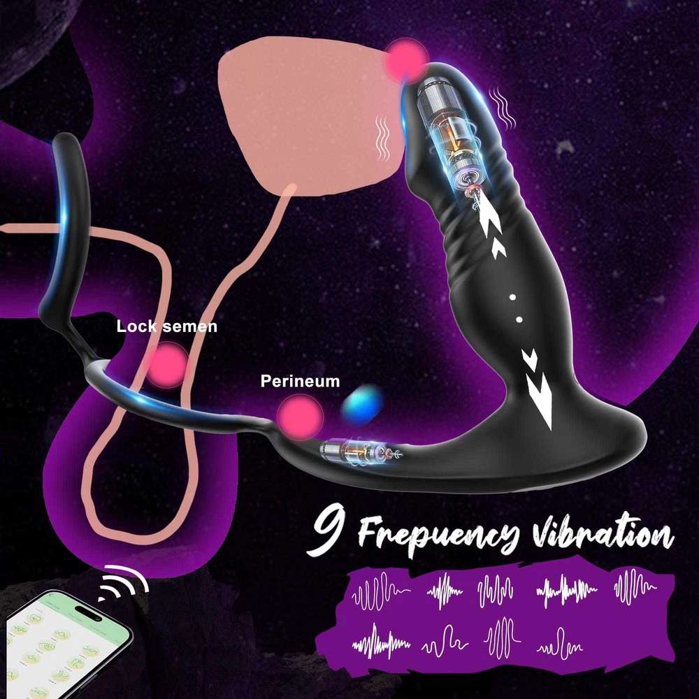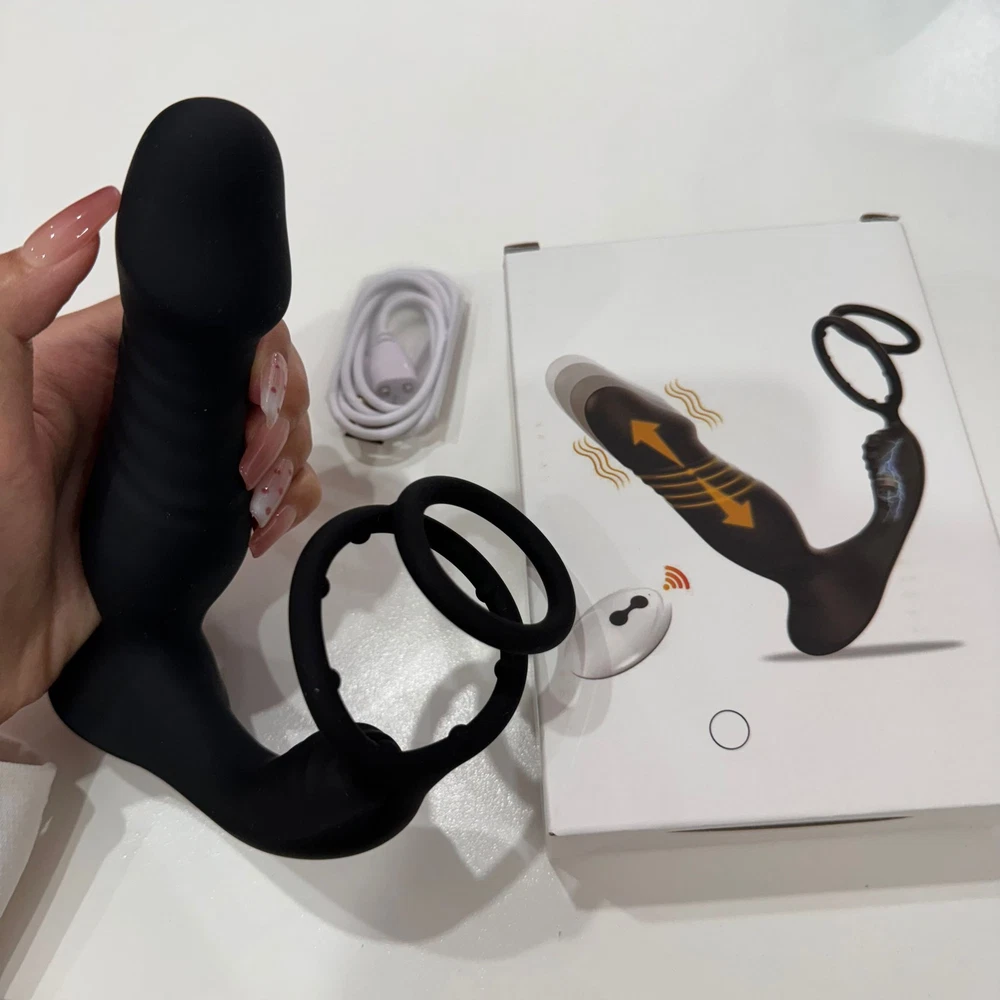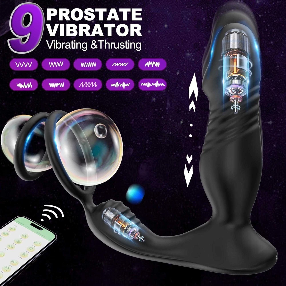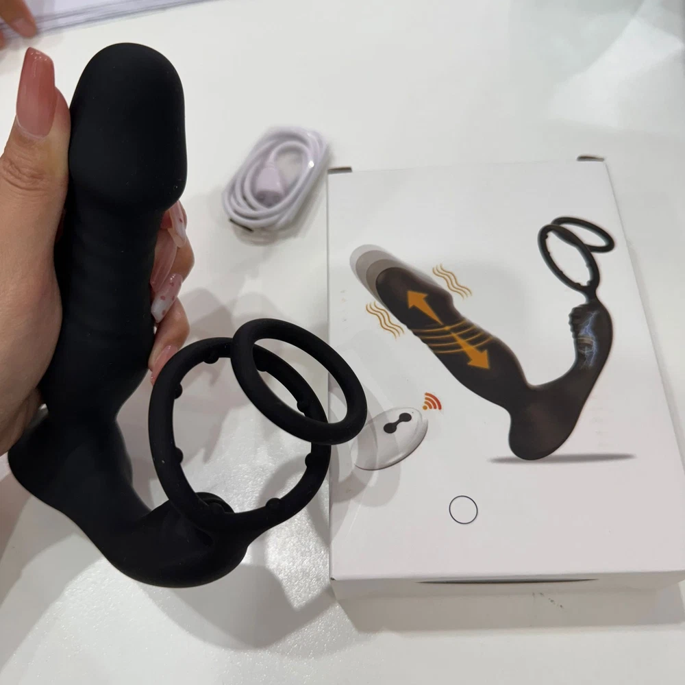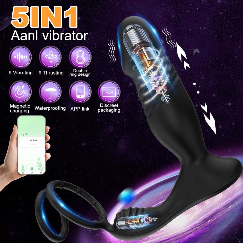 Male Thrusting Prostate Massager Vibrator Anal Butt Plug Dildo G-Spot Stimulate Sex Toys APP Control with Cock Ring US ❤ DISCREET PACKAGING - No senstive information on the box, avoiding unnecessary embarrassment,Your privacy is our priorit y - we will ship your package discreetly in an unmarked box(Your used id, name or information will only be available to us ,other buyer can't see) Features: 【5 IN 1 Anal Vibrator + Prostate Massager + Dual Ccock Ring】 This anal toy combine prostate massagger, anal vibrator, vibrating cock ring in one, the thrust dildo hit your P Spot and massages the prostate, the rippled base target vibrate the perineum, the soft cockring penis ring can exercises the dildos and prolong your excited. This male anal sex toys upgraded vibrating and thrusting rwill hit you P or G spot correctly. 【9 Stronger Vibrating & 9 Thrusting Modes】The dual motor design brings double the power, improving the problem of weak power of prostate massagers, giving you a variety of sensations to explore sex games 【Soft Silicone Prostate Vibrator】This thrusting prostate toy anal vibrator sex toy for men and women is silky smooth to fit the body, soft and sturdy, easy to clean. this prostate vibrator ensuring a comfortable and pleasurable experience, silky soft stretchy but stable silicone houses a small vibrating egg with enough room to reach where it needs to go, the dual penis ring is strechy enough to fit larger members. 【Smart APP Control】It comes with a APP control, so you or a partner can operate that, which makes even more funny when use it. also it can be APP controled easily in the metaXsire, Synchronizing it with the app was seamless, offering even more ways to enjoy it, whether solo or with a partner. The app just has more options to customize, you can change the vibration patterns while partner activities are in motion, adds a whole new dimension to using this prostate massager dildos. Desc ription : Function: 9 Thrusting Telescopic 9 Vibrating item Waterproof:IPX6 Waterproof Power:USB Rechargeable Vibrator Material: Silicone+ABS Size: Plug length:14.5cm/5.71in Plug dia:3.7cm/1.46in Bottom length:11.5cm/4.53in Package Contents 1 x Prostate Vibrator 1 x Charging Cable 1 x Operating instructions