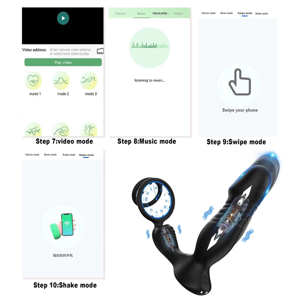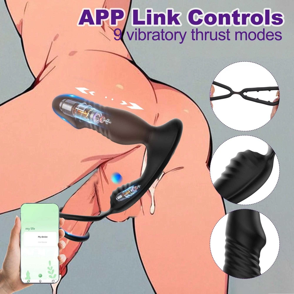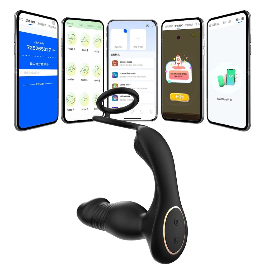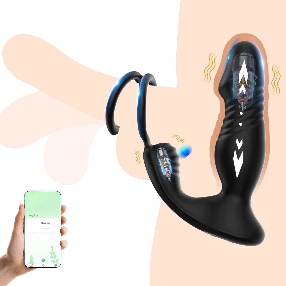Male Thrusting Prostate Massager Vibrator Anal Butt Plug Dildo G-Spot Stimulate Sex Toys APP Control with Cock Ring US ❤ DISCREET PACKAGING - No senstive information on the box, avoiding unnecessary embarrassment,Your privacy is our priorit y - we will ship your package discreetly in an unmarked box(Your used id, name or information will only be available to us ,other buyer can't see) Features: 【5 IN 1 Anal Vibrator + Prostate Massager + Dual Ccock Ring】 This anal toy combine prostate massagger, anal vibrator, vibrating cock ring in one, the thrust dildo hit your P Spot and massages the prostate, the rippled base target vibrate the perineum, the soft cockring penis ring can exercises the dildos and prolong your excited. This male anal sex toys upgraded vibrating and thrusting rwill hit you P or G spot correctly. 【9 Stronger Vibrating & 9 Thrusting Modes】The dual motor design brings double the power, improving the problem of weak power of prostate massagers, giving you a variety of sensations to explore sex games 【Soft Silicone Prostate Vibrator】This thrusting prostate toy anal vibrator sex toy for men and women is silky smooth to fit the body, soft and sturdy, easy to clean. this prostate vibrator ensuring a comfortable and pleasurable experience, silky soft stretchy but stable silicone houses a small vibrating egg with enough room to reach where it needs to go, the dual penis ring is strechy enough to fit larger members. 【Smart APP Control】It comes with a APP control, so you or a partner can operate that, which makes even more funny when use it. also it can be APP controled easily in the metaXsire, Synchronizing it with the app was seamless, offering even more ways to enjoy it, whether solo or with a partner. The app just has more options to customize, you can change the vibration patterns while partner activities are in motion, adds a whole new dimension to using this prostate massager dildos. Desc ription : Function: 9 Thrusting Telescopic 9 Vibrating item Waterproof:IPX6 Waterproof Power:USB Rechargeable Vibrator Material: Silicone+ABS Size: Plug length:14.5cm/5.71in Plug dia:3.7cm/1.46in Bottom length:11.5cm/4.53in Package Contents 1 x Prostate Vibrator 1 x Charging Cable 1 x Operating instructions