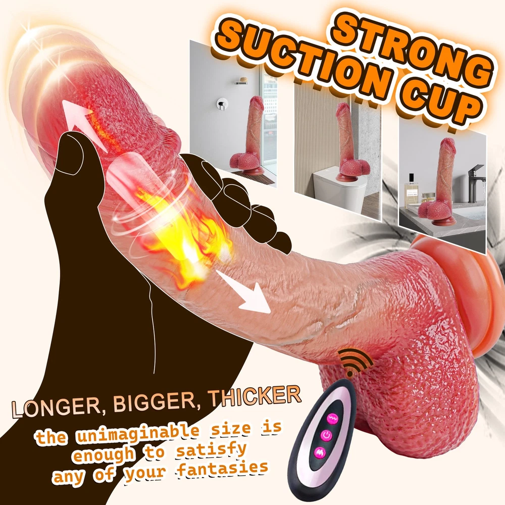 DISCREET PACKAGING We will ship your package discreetly in an unmarked box, Your used id, name or information will only be available to us ,other buyer can't see If you have any questions, please contact us, We are care about your shopping experience and the performance of the product. Features(About the item): About this item: 【9 Vibration Modes】 Dildo built-in powerful motor in the glans part, featuring 9 vibration modes , providing intervals, continuous patterns, and high frequency but minimal noise.Ensuring intense and screet stimulation. 【5 Thrusting and Rotation Modes】 Short press thrusting / vibration button to cycle through the thrusting and vibration mode .5 thrusting modes can be selected . 【Realistic Thrusting Dildos Vibrator for Women】 - This g-spot dildo stimulator looks exactly like a real penis, with thrusting, vibrating, heating functions. The vivid glans of the dildo, the lifelike penis veins, the plump wrinkle ball, the thickly turned penis shaft, when you touch the dildo, experience the real touch stimulation, the strong stretching and vibrating stimulates the vaginal G-spot, and the warm heating design feels real skin temperature. 【 Remote Control Design for Womern Pleasure】 - The anal dildo comes with an original remote control that allows you to remotely control the product and switch thrusting and vibrating modes. From a remote control distance you can have your partner or friend stand at a distance and control your climax. It\'s really convenient to have this remote control for hands-free play when you\'re using the toy alone. 【Skin-Friendly Silicone Waterproof Material】 - This realistic dildos is made of silicone with a soft and silky skin-friendly design, just like real skin contact with vaginal stimulation. The dildo is waterproof design, you can feel passion in the water, compared to traditional toys, this toy is more deeply rooted in the heart, water fun, more play, and easy to clean and easy to use. 【Strong Suction Cup & Hands-Free Toys】 - This telescopic dildo toys is designed with powerful suction cups in mind for the variety of gameplay as well as ease of use, giving you a strong hands-free toy that allows you to enjoy a variety of positions. You can use it on any flat surface and stick firmly to smooth surfaces such as bathrooms, kitchens, bedrooms, wooden doors, tables, walls, floors. Specification *Rated voltage 3.7V, rated current 8A * Color: Flesh * Full length: 8.46inch(21.5cm) * Insertion length: 6.29inch(16cm) * Diameter: 1.38inch(3.5cm) * Waterproof: Easy to Clean, but Do not soak the motor in water * Remote control battery: 12V27A * Heating Fuction * Material: Liquid Silicone Notice: 1. Recommended for use with lubricants. 2. It usually takes 90-120s to to heat up,you need to wait for a moment to feel the heating function 3. Clean the product before and after usage. This dildo can not be immersed in water for a long time. 4. Keep it dry and save in a secret place; away from children Package Includes: Vibrator*1 Charging cable*1 Remote control*1 Manual*1