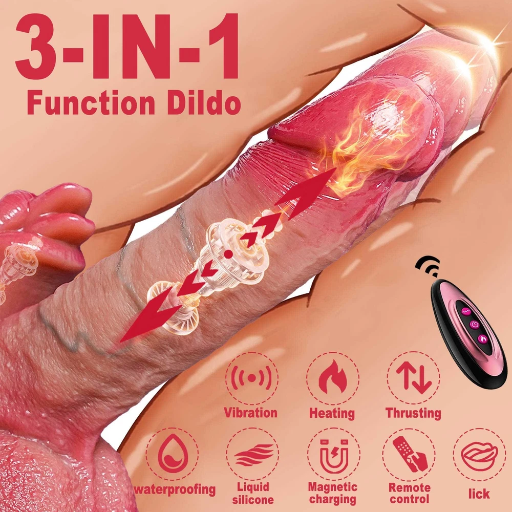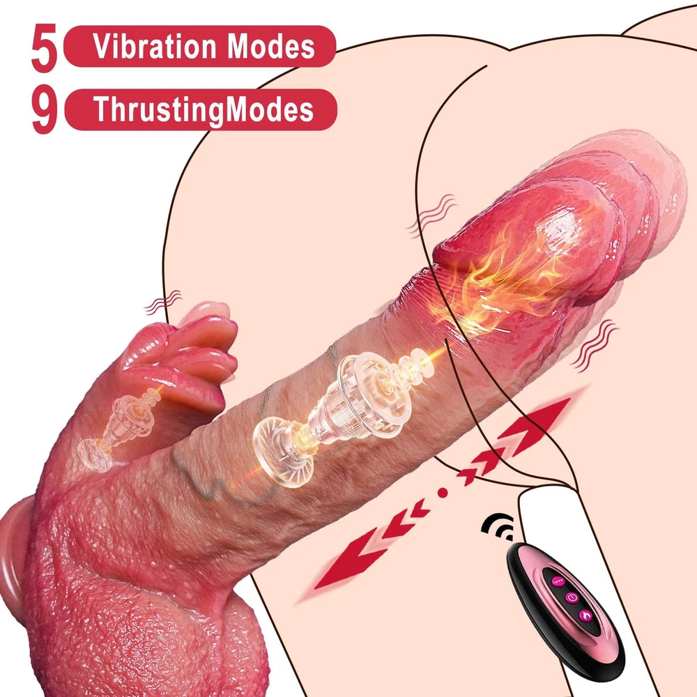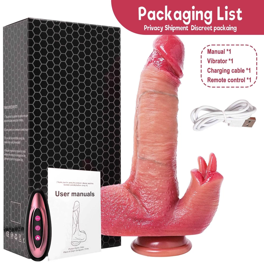 Features: 【9 Vibration Modes】 Dildo built-in powerful motor in the glans part, featuring 9 vibration modes , providing intervals, continuous patterns, and high frequency but minimal noise.Ensuring intense and screet stimulation. 【5 Thrusting Modes】 Short press thrusting / vibration button to cycle through the thrusting and vibration mode .5 thrusting modes can be selected . 【Heating Function】Short press the heating button to start the heating function . 【Gentle & Soft Silicone】 Vibrator dildo crafted from body-safe liquid silicone, ensuring a soft and gentle touch that won't harm sensitive body parts, providing peace of mind during your intimate moments. 【Realistic】 Intense lifelike texture, including skin-like veins, juicy balls and a pronounced head, ensures a highly stimulating and authentic experience with every use. 【Easy to Charge】 This multifunctional vibrating dildo is charged using a USB charger. It takes about 2 hours to fully charge and can be used continuously for about 1 hour. Specifications : 1. Rated voltage 3.7V, rated current 8A 2. Material : Liquid silicone 3. Waterproof : life waterproof 4. Charging time : about 2 hours to full , can be used continuously for about 45-60 minutes 5. Remote control battery :12V27A 6.Size: Total length: 22.5cm Insertable length:17cm Penis Diameter: 4.4cm Weight: 652g Package Content : Vibrator *1 Charging cable *1 Remote control *1 Manual *1 Discreet Packaging & Customer Service: Your privacy is extremely important to us. Package is packed in totally discreet so you could order in complete confidence. If you need any help, be sure to tell us promptly, we are always online to give you the most satisfactory customer service.