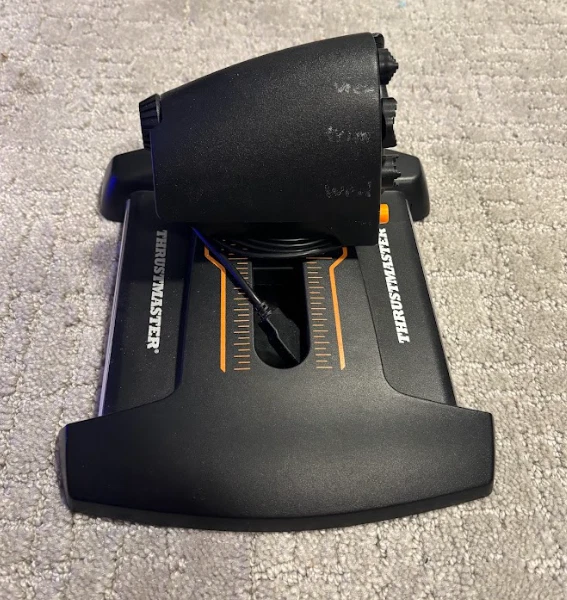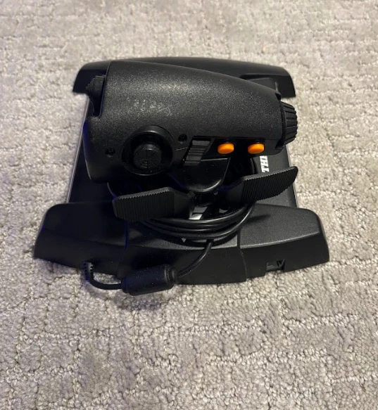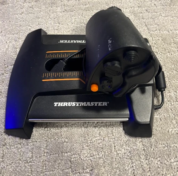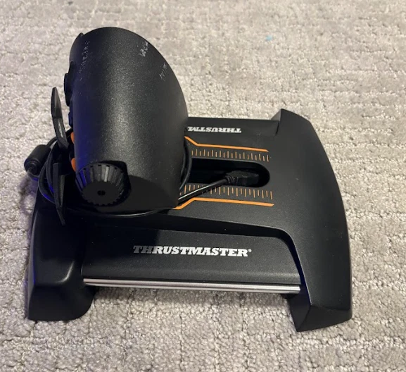 Thrustmaster TWCS, used in box. Decided to make the Switch to HOSAS. Previous owner left some marker on the throttle which I have not been able to fully clean off. All inputs showed up and worked fine on my PC. Could use some lubrication and with a couple of mods, should perform on par with some much more expensive throttles.