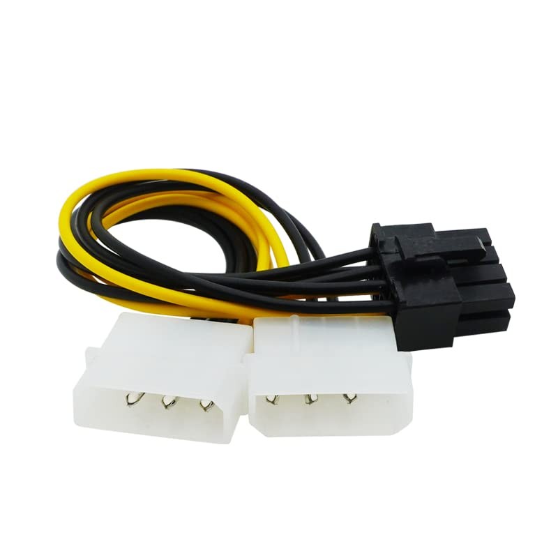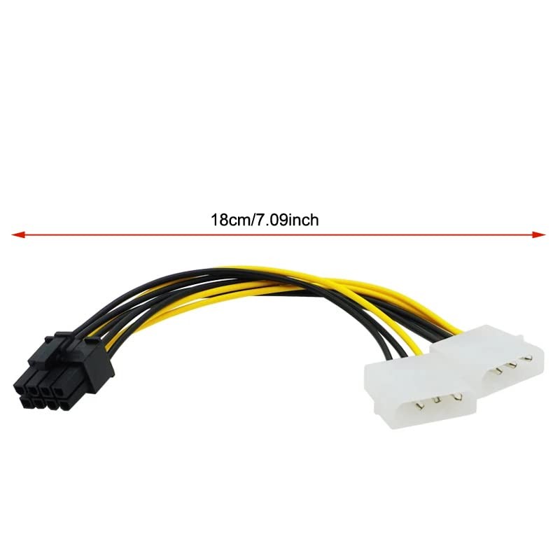 ThtRht 4 Pack 8-Pin PciE to Molex Dual 4-Pin Graphic 18 centimeters, Black Product Details Package: 4x 8pin to Dual 4pin Video Card Power Cord Power Cable Is Suitable for Computer Case. It Can Be Used to Transfer the Power Supply of the Graphics Card, and the Power Supply Is Stable. Power Cable Has Stable Socket and Smooth Interface, Which Is Firm, Not Loose and Easy to Install. IDE 4pinx2 to PCI-E 8pin Power Cable 4-Pin Molex LP4 Pc Power Supply Connectors Into One 8-Pin PCI Express Graphics Card Auxiliary Power Connector Features:1. It is a IDE 4PINx2 TO PCI-E 8PIN power cable,2. It can be used on many AMD and Video Card Power Cord3. Connector A:dual LP4 4 Pin Connections4. Connector B:8 Pin Male PCI Express5. Length:approx 18cmPackage: 4x 8pin to Dual 4pin Video Card Power Cord