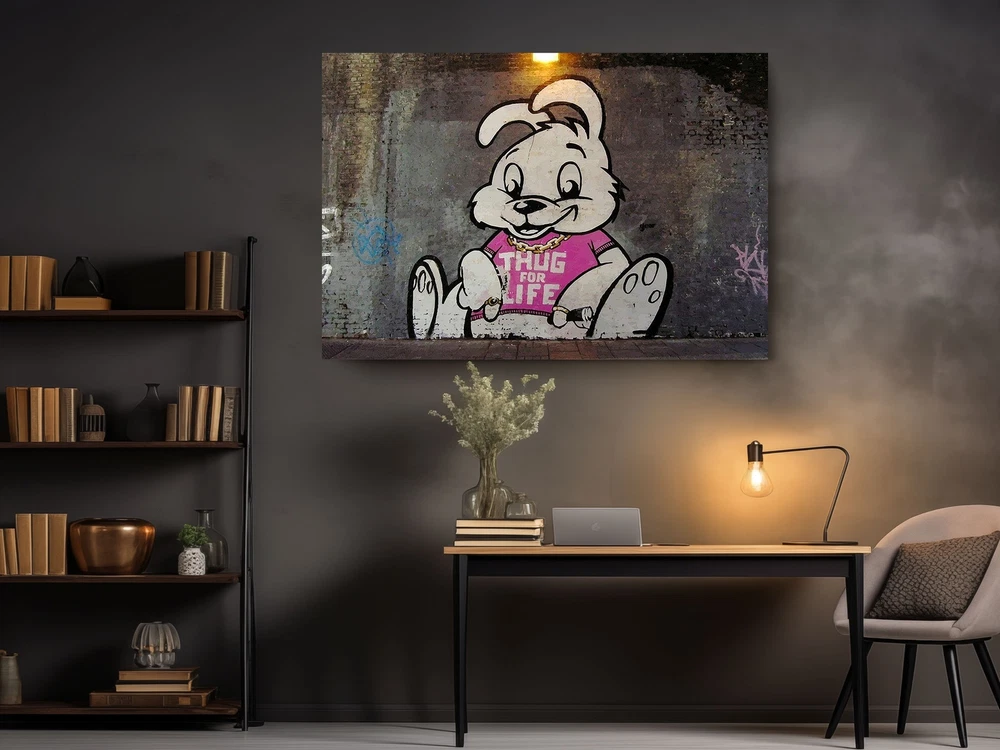 Thug Bunny Banksy Inspired Canvas Print, Ready to Hang, Home Décor