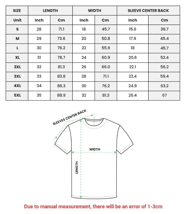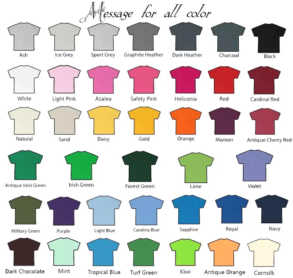 WELCOME TO OUR STORE If you are looking for a shirt for yourself or a gift for a loved one, our store is the perfect place to help you do it. We have a wide variety of t-shirt designs for you to choose from. We have attached the size chart so you can choose the right size. DESCRIPTION: Brand: Gildan Decoration type: Digital Print Material: 100% Cotton Available sizes: S, M, L, XL, 2XL, 3XL, 4XL (we also have 5XL if you request) SHIPPING: We proudly as American based company ship to the lower 48 states. SERVICE: Due to lighting effect and computer color, the actual color may be slightly different from the picture. Hope for your understanding on this. But customers who have used our products are very satisfied with the products they receive from us. We do not accept returns of goods for the following reasons: Customers choose the wrong size. we only accept return for damage or bad printing result FEEDBACK: The satisfaction of our customers is the first place for us. If you are happy with your purchase, PLEASE take a moment to leave Positive feedback for us. We really appreciate that. If you are not happy with the purchase, PLEASE contact us to resolve the problem. We are always here to give you the best solutions. THANK YOU SO MUCH, HAVE A GOOD DAY!