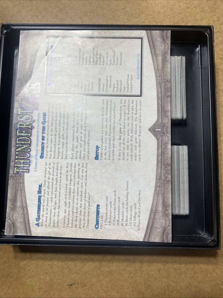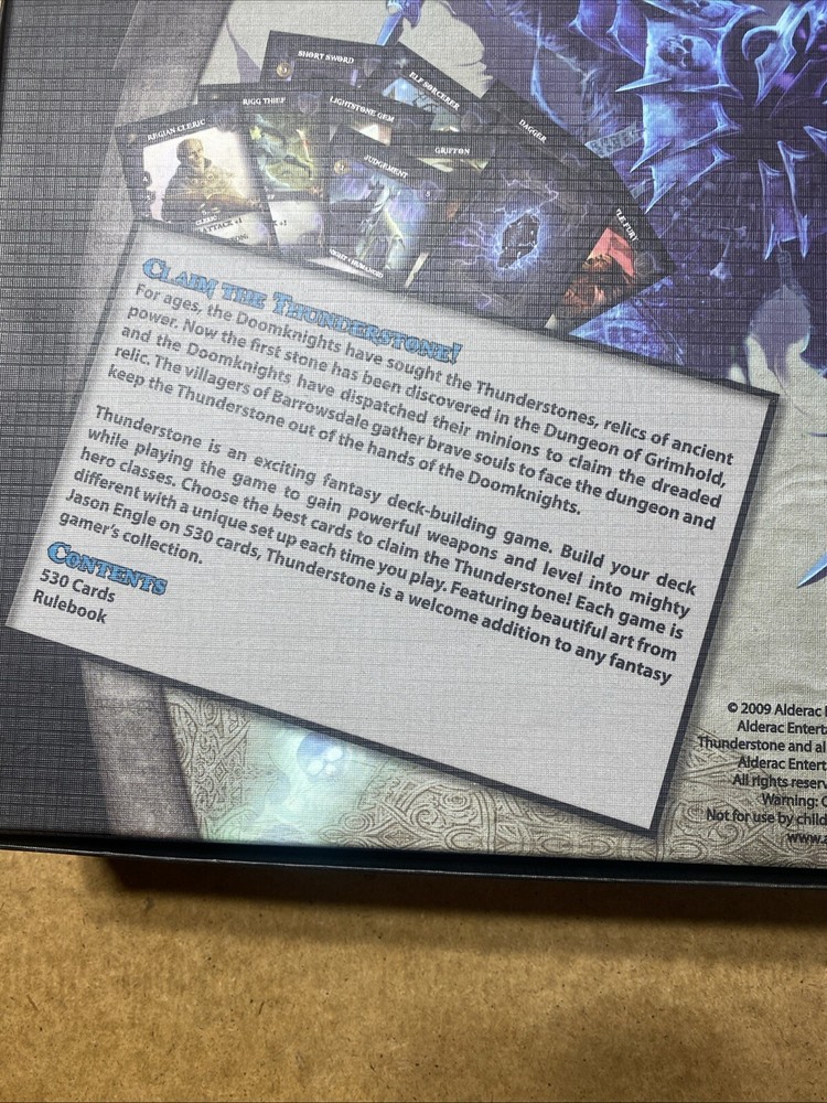 Gender:Boys & Girlsgtin13:9781594721274Age Level:12-16 Years, 17 Years & UpType:CardsRecommended Age Range:12+Min. Number of Players:2 playersGame Title:ThunderstoneTitle:ThunderstoneTheme:FantasyUPC:9781594721274Game Type:Deck-building GameCharacter Family:ThunderstoneBrand:AEGYear:2009