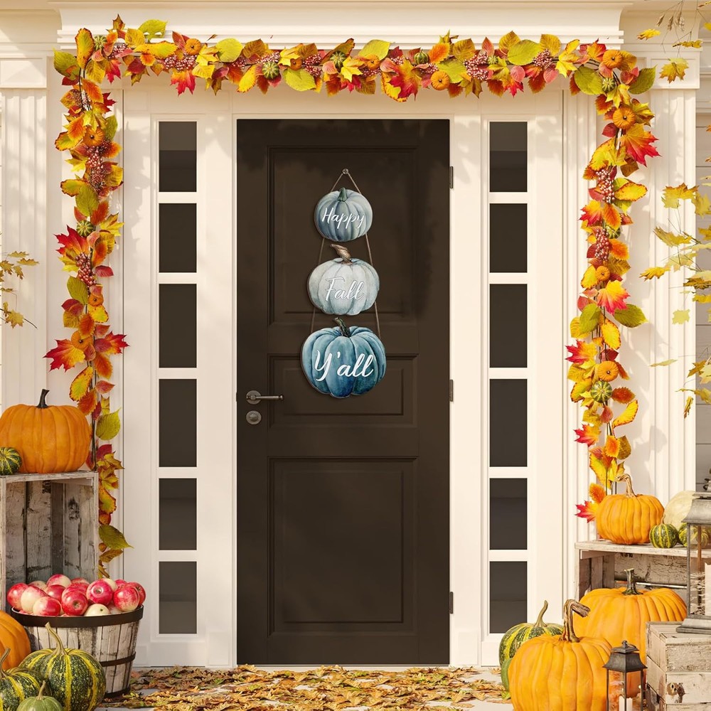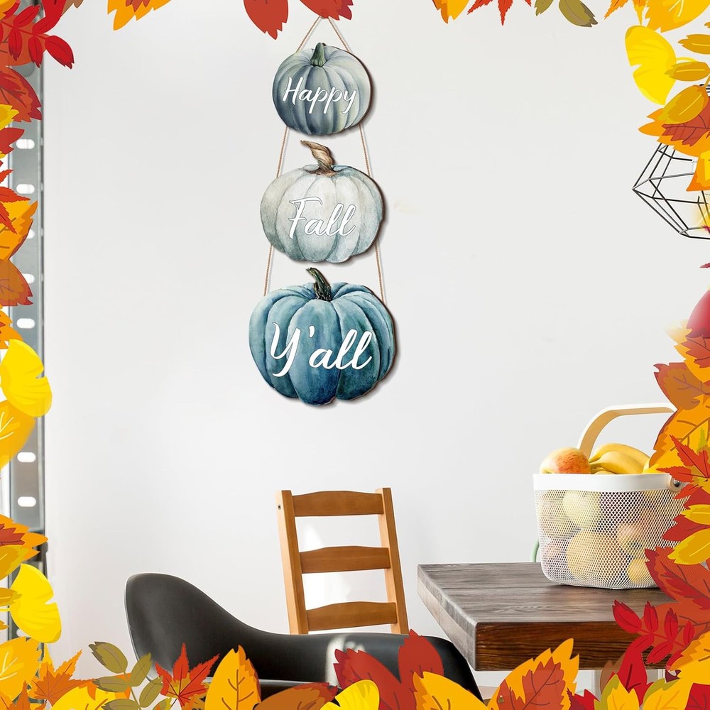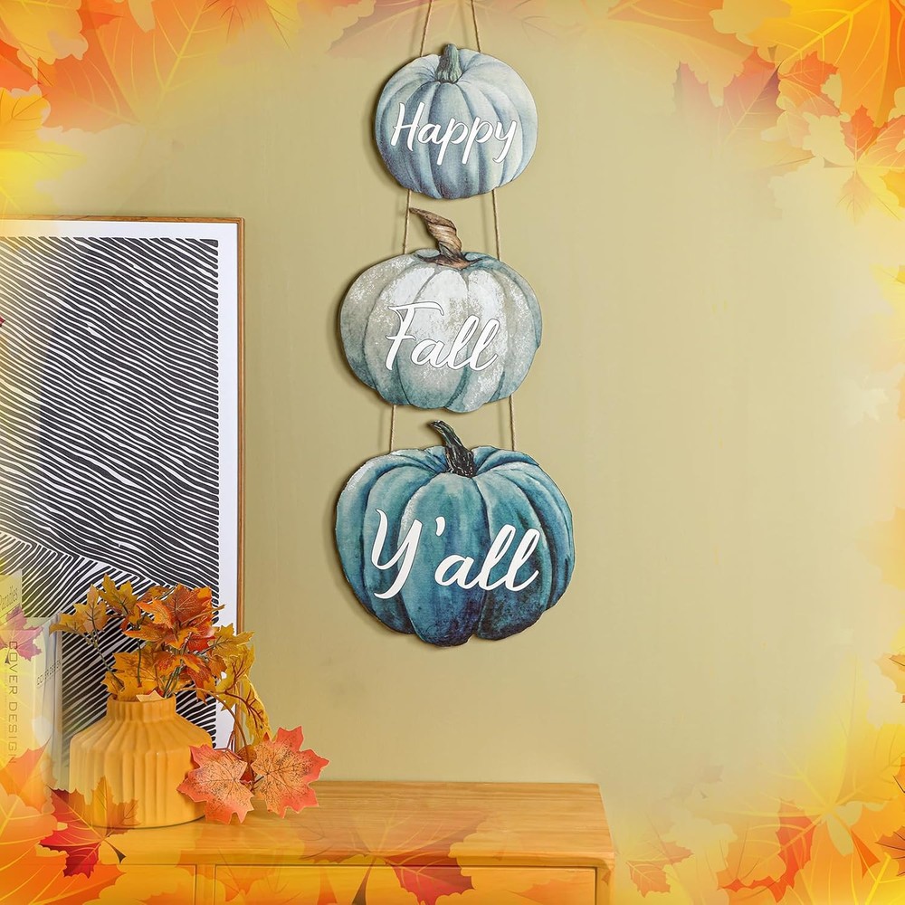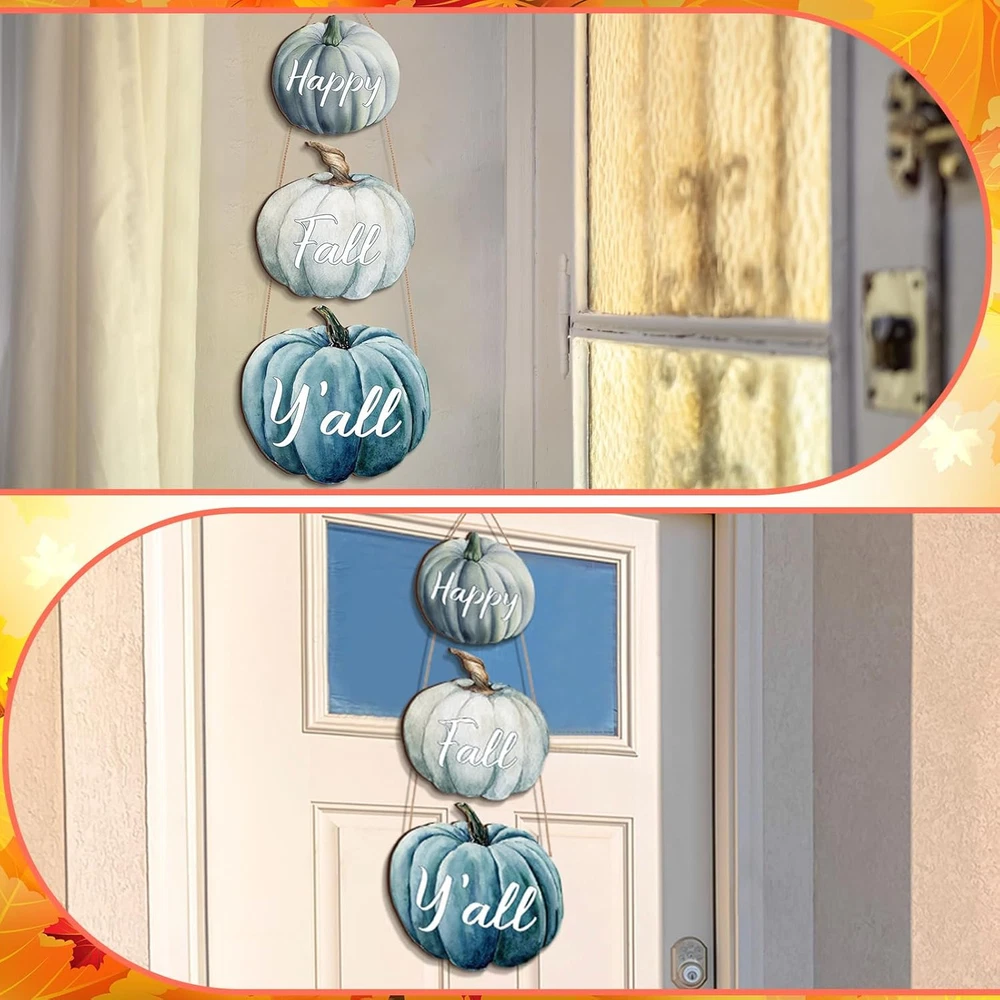 Thyle 3 Pcs Fall Pumpkin Decor Blue Wall Signs Wooden Hanging Door Product Details Mounting Type: Door Mount,Wall Mount Product Dimensions: 8"L x 8"W Shape: Rectangular Item Weight: 0.37 Kilograms Style: Classic Style Pre-printed: Pumpkin/Autumn Themed Item Thickness: 0.2 Inches Item Weight: 13.1 ounces Manufacturer: Thyle Country of Origin: China Item model number: DEA-Thyle-250 Batteries required: No Color: Pumpkin Brand: Thyle Material: Wood, Metal Theme: Halloween Recommended Uses For Product: Property Fall Themed Gift: whether it's housewarming, autumn, Thanksgiving, or Halloween, autumn pumpkin decorations are the ideal choices for gifts to family, friends, and neighbors; If you hang these signs where all your guests can see it, they will add more festive atmosphere to the special Thanksgiving holiday in autumn Exquisite Decor: you can apply this pumpkin decoration as a home decor, which can be applied to decorate your living room, dining room, bedroom, office, kitchen, and other places, creating a rich autumn and harvest atmosphere; At the same time, the particular exterior design of this pumpkin decoration can fully showcase your artistic taste Addition to Your Space: this autumn door hanger can be applied indoors and outdoors; The width of this decoration is about 10.2 inches, 9 inches and 8 inches respectively, and the thickness is about 0.2 inches/ 0.5 cm, suitable for your front door or wall, which will bring some joyful atmosphere to your neighbors, friends, and family, and gain additional happiness Trustworthy Materials: our autumn pumpkin listing applies quality wood materials, which is sturdy, durable, safe, odorless and not easy to deform or fade, supporting a long service time for you, besides, the meticulously polished surface comes with a reliable coating, making it smooth, with clear printing and comfortable touch Create Autumn Atmosphere: our pumpkin tags, with clearly and naturally patterns printed on them, are meticulously crafted and pay attention to details, and if you apply them to welcome autumn, they will add particular features to your home, making your day enjoyable, leaving you an unforgettable autumn memory