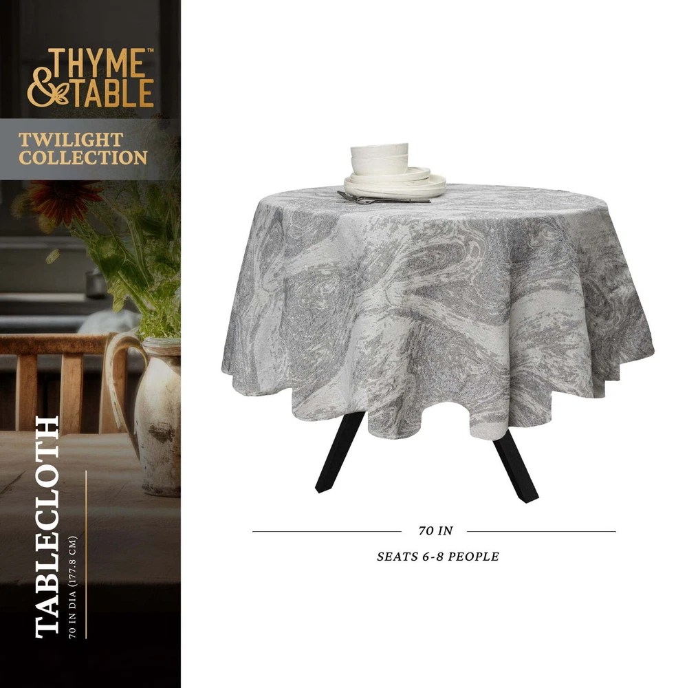 Thyme & Table 70" Round Tablecloth, Gray Marble,Waterproof