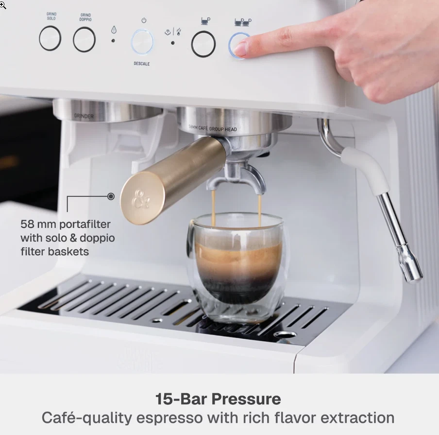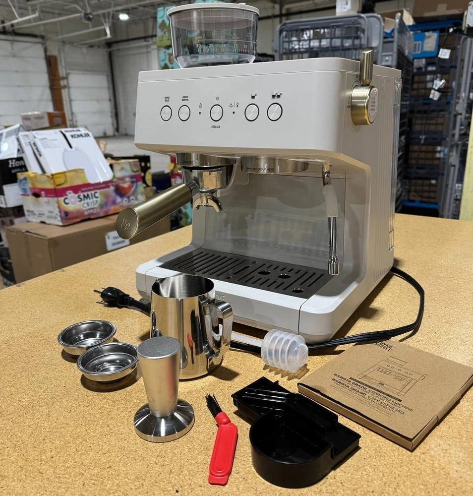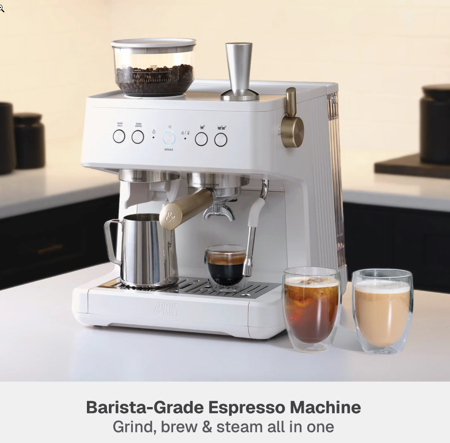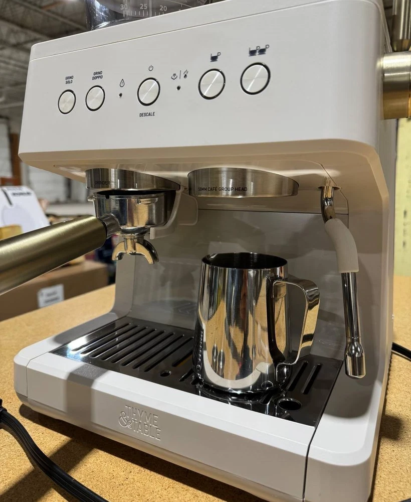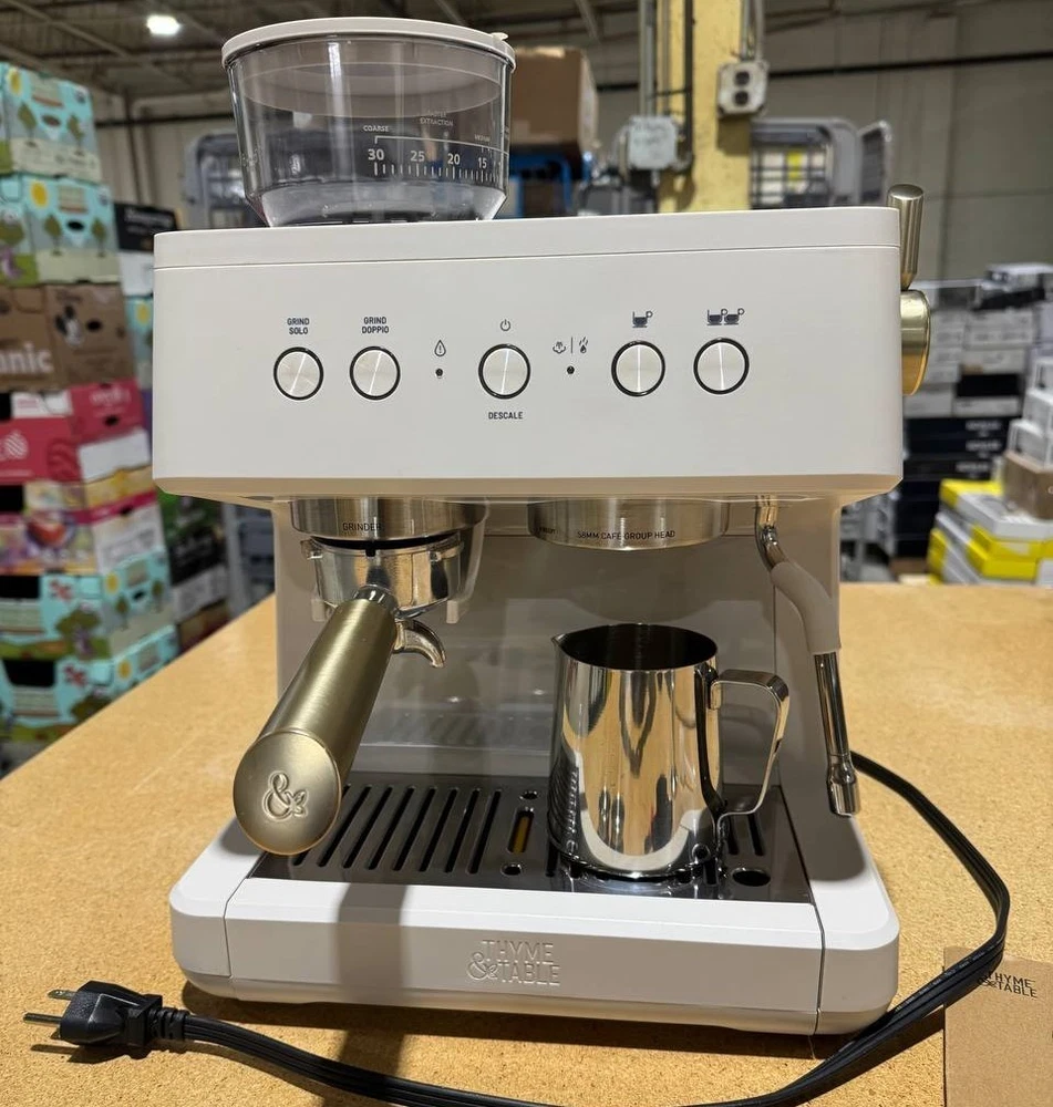 Thyme & Table Barista Mini Espresso Machine – Model TT1579-S – Sand White – Compact 15-Bar Espresso Maker Upgrade your at-home coffee setup with the stylish and compact Thyme & Table Barista Mini Espresso Machine (Model TT1579-S) . Finished in premium Sand White , this machine combines modern design with strong brewing performance — perfect for espresso lovers who want café results without the bulk. ⭐ Key Features 15-Bar High-Pressure Pump Extracts rich, flavorful espresso with a smooth crema. Compact Countertop Design Ideal for apartments, small kitchens, offices, or dorms. Simple One-Touch Brewing Easy operation for beginners and experienced users. Removable Water Reservoir Convenient filling and cleaning. Stainless Steel Portafilter & Filter Basket Durable components for consistent extraction. Modern Sand White Finish Clean, sophisticated look that blends with any interior. 📌 Specifications Brand: Thyme & Table Model: TT1579-S Color: Sand White Machine Type: Mini Espresso Maker Pressure: 15-Bar Pump Water Reservoir: Removable Construction: Plastic & Metal housing Portafilter Type: Stainless steel Control Type: Manual / One-touch Use: Ground coffee (not pods) Dimensions: Compact footprint (manufacturer lists as mini size) Power: Standard household plug (110–120V) 📦 What’s Included Espresso machine (model TT1579-S) Portafilter Filter basket Removable water tank Drip tray User manual 💬 Buy With Confidence If you have any questions or concerns, feel free to message — we respond quickly and always take care of our buyers.