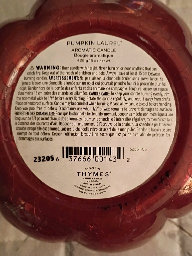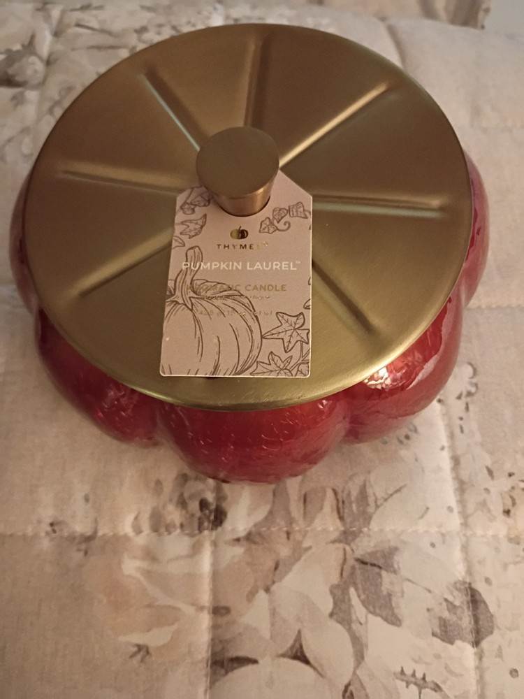 Thymes Pumpkin Laurel Candle in Glass Container Aromatic Candle