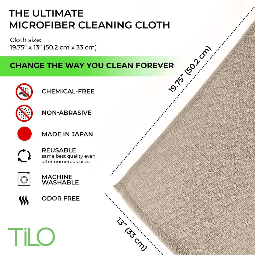 TiLO is a well-established brand focused on providing premium quality cleaning solutions and accessories that will never cease to impress in terms of performance and durability. We are working with the highest quality materials and advanced designs to deliver a wide range of safe and efficient products that will make every cleaning job more effective and easy. If you are not entirely pleased with your order, there is no need to worry. We are always at your service to resolve any issues in the shortest possible time. Microfiber Cleaning Cloth – The Ultimate Cleaning Experience By TiLO Our microfiber cleaning cloths will impress with their cleaning capacity, featuring a special 50% polyester and 50% nylon structure that’s ultra-soft but highly effective on every surface! The soft microfiber cloths are gentle with most surfaces but can remove in no time any dirt, dust, grime, impurities, or residues without leaving behind streaks or lint but a perfectly clean surface. Ditch your old cloths and choose quality above all with TiLO cleaning cloths that can be used for household cleaning, car detailing, industrial cleaning or other purposes. Still not convinced? Here are some of the amazing features of this product: Dimensions: 19.75 x 13-inch Available in Grey, White, Pink, Green, Beige; 50% polyester and 50% nylon; Made in Japan; Lint-free and scratch-free; Streak-free cleaning for a mirror-like finish; Superior durability and wear resistance; No foul odors; Ultra-absorbent; Gentle and effective on all surfaces; Easy cleaning of dirt, dust, grime, oil, stains, stubborn marks, liquids, spills; Suitable for car detailing, furniture cleaning, upholstery, glass, tile, marble, wood, metal, fabric, and more; Machine washable; Cleaning will be much easier and more efficient with the TiLO microfiber cloths!< The Ultimate Cleaning Cloth: If you are looking for a new microfiber cloth that’s gentle with the surfaces but can scoop up even the most stubborn dirt, the TiLO microfiber towels are what you need! These microfiber cleaning cloths are soft, highly durable and efficient on every surface, which makes them perfect for every cleaning job! Superior Quality Materials: TiLO microfiber car towels are made in Japan and have the optimal combination of high-quality materials - 50% polyester and 50% nylon, which makes the cloths highly resistant and long-lasting, maintaining their color and shape even after years! Excellent Cleaning Power: Our microfiber cleaning cloths for electronics are very soft and gentle with the surfaces but also can clean every stain, dust, grime, dirt, and other impurities without the use of any solutions! The cloths leave the surfaces clean, scratch-free and streak-free, without residues or lint! Effective on Every Surface: These microfiber cleaning cloths can be used on any type of surface, including glass, wood, furniture, upholstery, metal, fabric, tiles or marble, accommodating to any household, industrial, car detailing, or other cleaning needs! Quality You Can Trust: TiLO is brand focused on quality above all. We are careful to work with the highest quality materials and professionals to create safe and effective cleaning products and accessories that meet the highest quality standards!