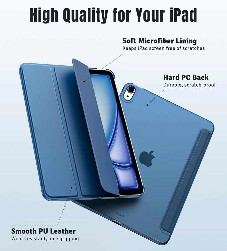 TiMOVO for iPad Air 11 Inch Case M2 2024, iPad Air 5th Generation 2022/iPad Air Features: Compatibility: Preciously designed for iPad Air 11 Inch M2 2024(A2902/A2903/A2904)/iPad Air 5th generation 2022(A2588/A2589/A2591), iPad Air 4th generation 2020 (A2072/A2316/A2324/A2325). Note: It will not be compatible with other iPad Great Protection: This iPad Air 11 inch M2 case with front PU leather and back hard PC provides protection against scratches, shocks, drops, and impacts. It is convenient for you to see the Apple icon with the frosted translucent back Slim and Light-weight: Slim and lightweight design add no bulk to your iPad Air 11-inch/5th/4th generation, you could carry it with your iPad every time and everywhere Auto Wake/Sleep: This iPad Air 11 inch cover Supports auto wake/sleep function, and protects and extends battery life. Precise cutouts, with all buttons and ports accessible, such as Touch ID unlock function and Apple pencil charging Two Viewing Angles: The iPad Air 11-Inch Case with a trifold stand provides 2 convenient stand positions for reading, watching movies, or typing Features: Compatibility: Preciously designed for iPad Air 11 Inch M2 2024(A2902/A2903/A2904)/iPad Air 5th generation 2022(A2588/A2589/A2591), iPad Air 4th generation 2020 (A2072/A2316/A2324/A2325). Note: It will not be compatible with other iPad Great Protection: This iPad Air 11 inch M2 case with front PU leather and back hard PC provides protection against scratches, shocks, drops, and impacts. It is convenient for you to see the Apple icon with the frosted translucent back Slim and Light-weight: Slim and lightweight design add no bulk to your iPad Air 11-inch/5th/4th generation, you could carry it with your iPad every time and everywhere Auto Wake/Sleep: This iPad Air 11 inch cover Supports auto wake/sleep function, and protects and extends battery life. Precise cutouts, with all buttons and ports accessible, such as Touch ID unlock function and Apple pencil charging Two Viewing Angles: The iPad Air 11-Inch Case with a trifold stand provides 2 convenient stand positions for reading, watching movies, or typing eBay integration by