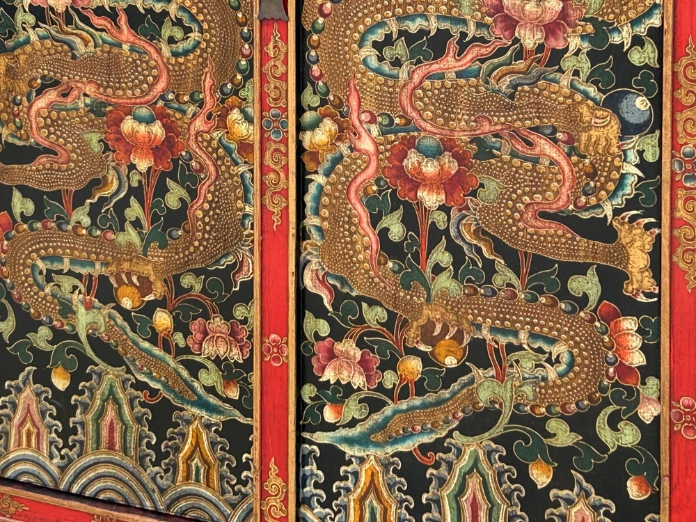 Tibetan Style Golden Double Dragons Graphic Credenza Storage Cabinet ws4618 DESCRIPTION Embrace the captivating artistry of this hand-painted Tibetan cabinet, a striking statement piece adorned with powerful golden dragons amidst intricate floral and auspicious motifs. This unique, handcrafted elmwood furniture not only offers practical storage but also infuses your living space with rich cultural symbolism and vibrant Eastern charm. The meticulous detailing and traditional techniques ensure a high-quality, durable piece that stands out, perfect for collectors of ethnic art and those seeking distinctive, spiritually inspired home décor. Elevate your interior with this exceptional cabinet, a testament to exquisite craftsmanship and timeless design. Dimensions: w47" x d18" x h60" Origin: China Material: Wood Condition: hand-made, distressed marks Work : Ship in one piece We offer a flat shipping fee of $445 for customers in the contiguous United States (48 states) for convenient curbside delivery. (Additional shipping costs will apply to customers in New York, Hawaii, Alaska, US Islands, Florida Keywest, or Canada, based on their specific location). The shipping cost includes insurance and handling charges for added protection.For customers in San Francisco or the Bay Area, we provide local delivery at a cost determined by the distance. You can find the exact cost by entering your zip code during checkout. Alternatively, you can pick up your order in-store with no extra shipping fee.If you need extra care and a white-glove experience, we offer a specialized service with a 4-8 week transit time, tailored to your destination. Contact us for a detailed quote on this service.Upon receiving your shipment, please carefully inspect the exterior packaging while the delivery personnel are present. Note any visible damage on the delivery paperwork, as carriers do not typically honor concealed damage claims. Your cooperation in documenting any visible damage is greatly appreciated Shipping Payment Return Contact Us Shipping Payment Return Contact Us US domestic continental buyer of 48 state pays listed shipping charge for curbside delivery. Customer from Hawaii, Alaska, US Island, Florida Key West and Canada pays extra Shipping cost. Insurance and handling charge are included in the shipping cost. Curbside - trucker drops off the pallet roadside of your location. We normally ship within 5 to 7 business days after payment, usually sooner. When your shipment is delivered, carefully inspect the outside of the packaging before the delivery personnel leave. It is important to clearly indicate if there is any visible damage to the packaging or items on the delivery paperwork. Carriers usually do not honor concealed damage claims so it is crucial to clearly indicate any visible damage to the packaging or items on the delivery paperwork. In-store pickup is highly welcomed if you are in San Francisco Bay Area (No charged) White Glove In-house Delivery service can be arranged - estimate an additional $500 -$700 based on the furniture size and volume. The Shipping company needs to accumulate shipments to move from coast to coast, so please understand the transit time is about 6 - 8 weeks. For customer who are looking to buy multiple items, we can do combine shipping - several items on the same pallet or small item inside the largest items as long as it can fit in. Global shipping is available, please contact us. We accept Paypal and all major credit card (Visa, Master, American Express and Discover) For internatinal customer, the easiest way is to pay by Paypal, we will only ship to Paypal comfimed address. - In the event that you would like to return your purchase, we allow returns that are processed within the defined return date (the return date is to be found in the return policy/shipping and handling section) - Please contact us for a return authorization and the return shipping address - We advise you to use a reputable carrier service when returning your goods. Please pack all returns appropriately. - Buyer may be responsible for round trip shipping. Damage Claim: For Curbside trucking shipment, please check the product is in good condition before you sign the release paper and accept the shipment. Report to the driver and write a note on the shipping document if there is any damage. Take photos for the record. We are not responsible for any conceded damage reported afterward. Customer is responsible to report any damage as soon as possible after receiving the item, All packing material should be kept for damage claim. We will not responsible for any damage cost if damage claim cannot be filed to the insurance company due to customer mistake " did not keep the original packaging material and box" If you have any question, please contact us via ebay. We usually respond within 10 min during office hour. Monday ~ Sunday (7days 10.00 am till 6.00 pm). See our other items Embrace the captivating artistry of this hand-painted Tibetan cabinet, a striking statement piece adorned with powerful golden dragons amidst intricate floral and auspicious motifs. This unique, handcrafted elmwood furniture not only offers practical storage but also infuses your living space with rich cultural symbolism and vibrant Eastern charm. The meticulous detailing and traditional techniques ensure a high-quality, durable piece that stands out, perfect for collectors of ethnic art and those seeking distinctive, spiritually inspired home décor. Elevate your interior with this exceptional cabinet, a testament to exquisite craftsmanship and timeless design. Dimensions: w47" x d18" x h60" Origin: China Material: Wood Condition: hand-made, distressed marks Work : Ship in one piece We offer a flat shipping fee of $445 for customers in the contiguous United States (48 states) for convenient curbside delivery. (Additional shipping costs will apply to customers in New York, Hawaii, Alaska, US Islands, Florida Keywest, or Canada, based on the