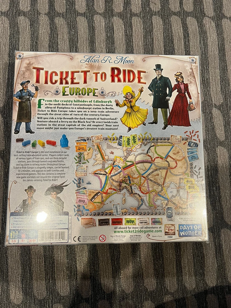 Days of Wonder Ticket to Ride Europe Train Board Game - Complete Used complete condition. The box has a bit of wear and a tear on one corner. The pieces, cards, markers, and board are in good condition. Please choose economy or priority shipping in the options. Feel free to contact me with any questions, I'm happy to help.