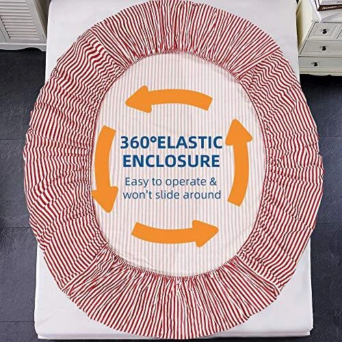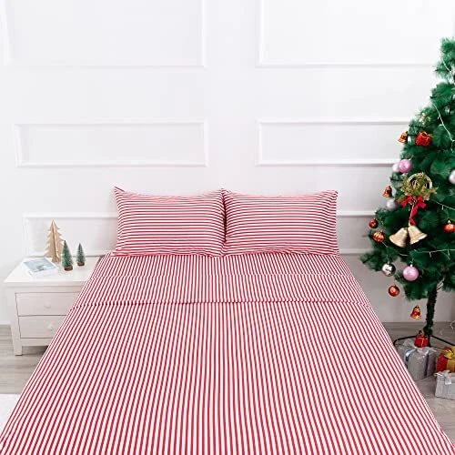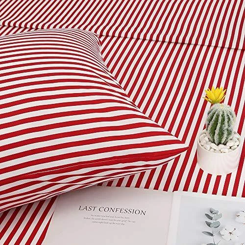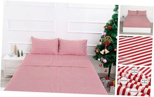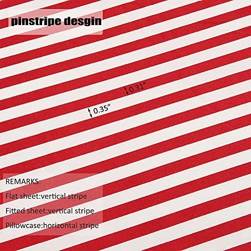 30 Days Return Policy Fast Delivery Trusted seller Ticking Stripe Sheet Set,4 Piece Queen Size Microfiber Bedding,Burgundy Red and White Pinstripe Patterned,Deep Pocket Product Description 【4 PIECE BED SHEET SET】Queen size,1 flat sheet(102"x90"),1 fitted sheet(80"x60") and 2 standard pillowcases(20"x30") 【BRUSH MICROFIBER】Super soft microfiber polyester fabric,smooth and comfortable. 【SHIRNK AND FADE RESISTANT】Our sheets are stain resistant,fade resistant,and wrinkle resistant. 【DEEP POCKET】Fitted sheet makes with all-around elastic,can cover your mattress perfectly up to 16inches thickness. 【PINSTRIPE DESIGN】Width:white stripe 0.35",red stripe 0.31".Stripe direction:flat sheet and fitted sheet are vertical stripe,pillowcase is horizontal stripe. Shipping Returns Payment Shipping Shipping is FREE to all addresses other than APO/PO boxes in the lower 48 states. All our stock ships from US-based warehouses. Shipped via USPS or UPS (depending on location and package weight) Unless stated otherwise, all orders will ship within 24-72 hours of your payment being processed. Check our feedback to see the great reviews of FAST shipping we offer. Returns As our valued customer, we will do our best to make sure the product you receive arrives to you on time and as expected. If you are not satisfied with your purchase, please contact us within 30 days of receiving your order to process a return. Payment We currently accept payment via eBay managed payments only. Once payment is cleared, we will dispatch your shipment within 1-3 business days. Please refer to the "Shipping" tab for more information regarding shipping speed to your destination.