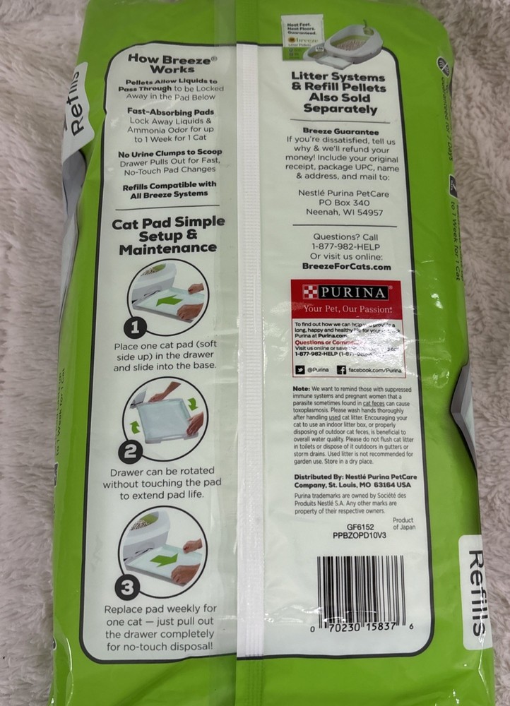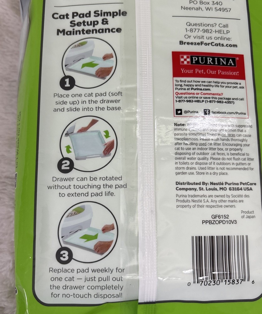 Country of Origin: Japan Model: Purina Tidy Cats Breeze Brand: Tidy Cats gtin13: Does not apply UPC: Does not apply Type: Breeze Cat Pads