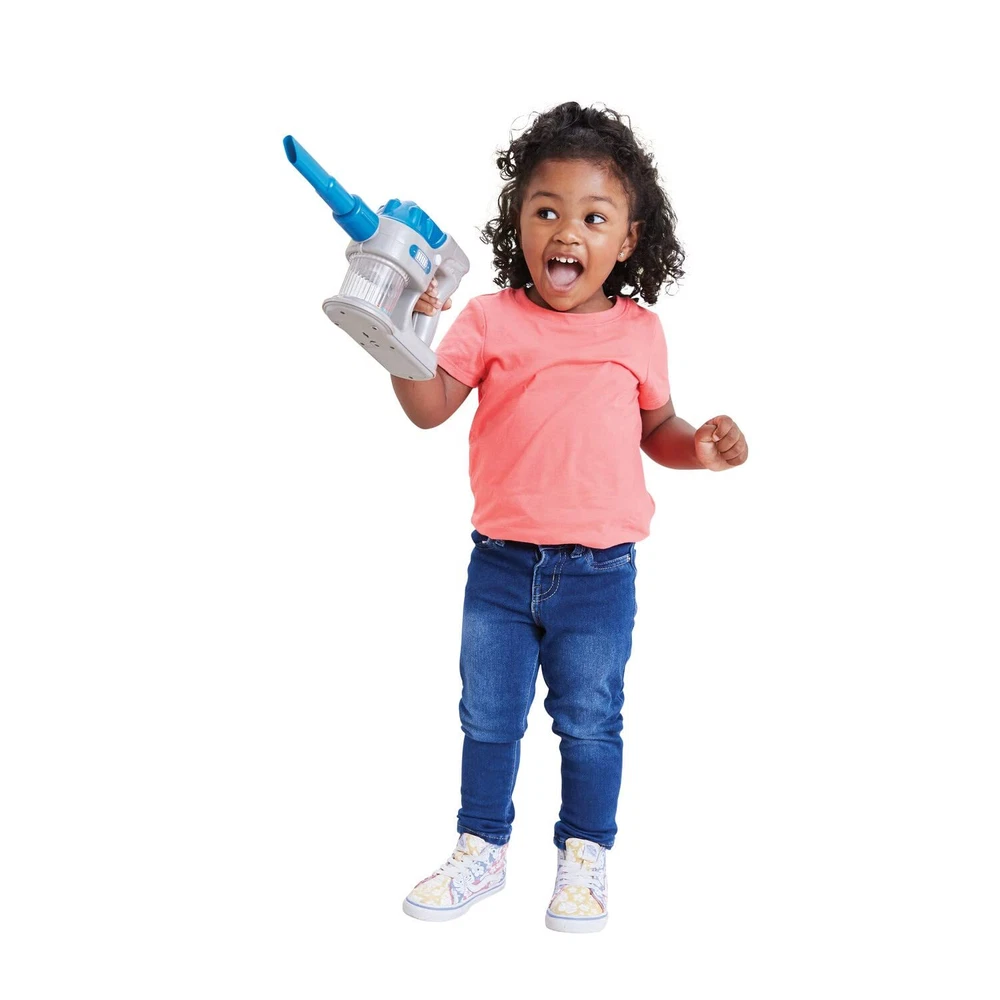 Tidy Vacuum Duo from is a 2-in-1 stick and handheld cordless toy vacuum cleaner with sleek design and professional appearance. Use the upright stick vacuum cleaner for classic pretend play! Adjusts to varying height with 18" and 9" stick attachments. For handheld play, remove stick attachments and easily twist on nozzle and tool attachment. Press the button to engage realistic suction to pick up "dirt"! Watch "dirt" swirl in the internal chamber. Includes one package of foam "dirt" for pretend play! Requires 3 "AA" batteries, included. JUST LIKE THE REAL ONE: 2-in-1 stick and handheld cordless toy vacuum cleaner with sleek design and professional appearance. HEIGHT ADJUSTABLE: Use the upright stick vacuum cleaner for classic vacuum play! Adjusts to varying height with 18" and 9" stick attachments. MULTIPLE PLAY OPTIONS: For handheld play, remove stick attachments and easily twist on nozzle and tool attachment. REALISTIC ACTION: Press the button to engage realistic suction to pick up "dirt"! Watch "dirt" swirl in the internal chamber. Includes one package of foam "dirt" for pretend play! PRODUCT SPECIFICATIONS: Package contains 2-in-1 Tidy Vacuum Duo. Requires 3 "AA" batteries, included.
