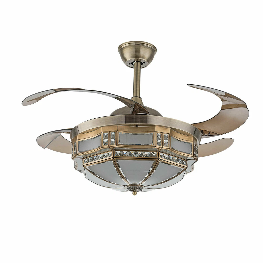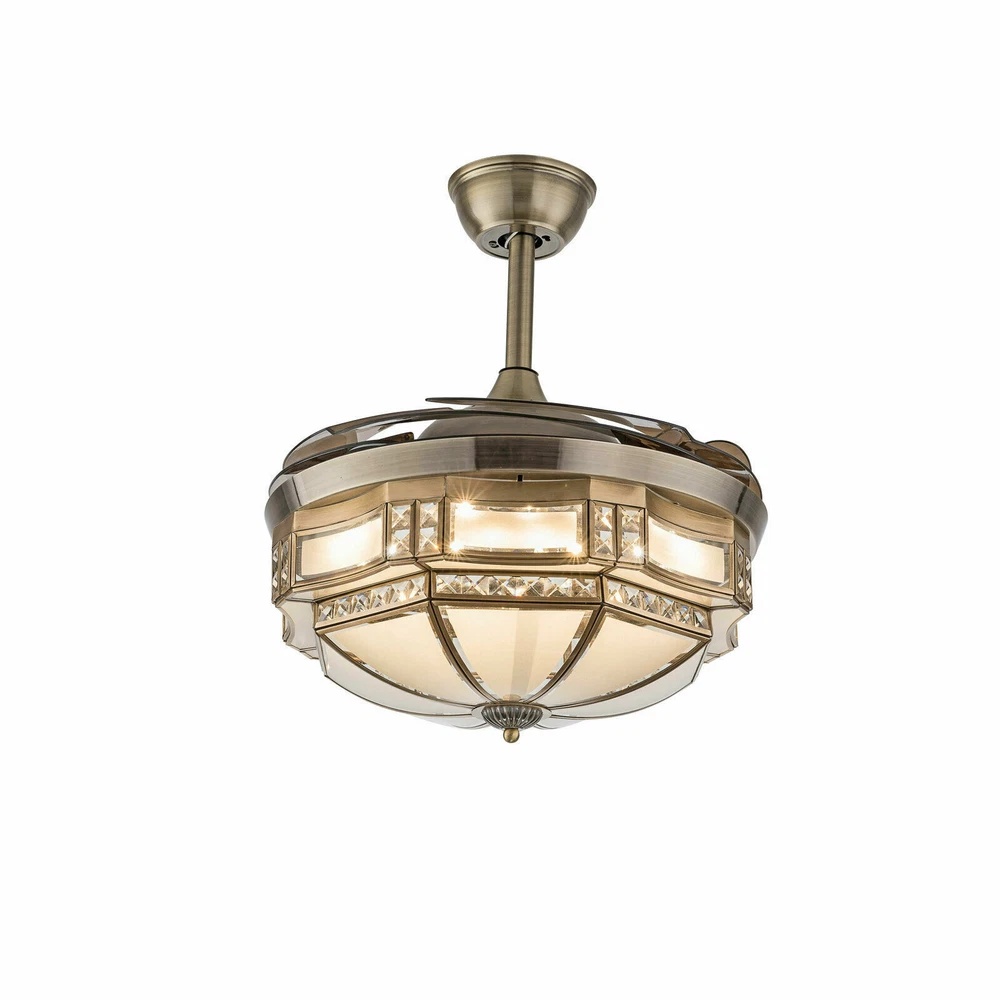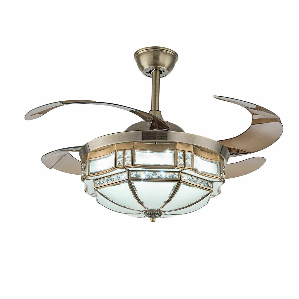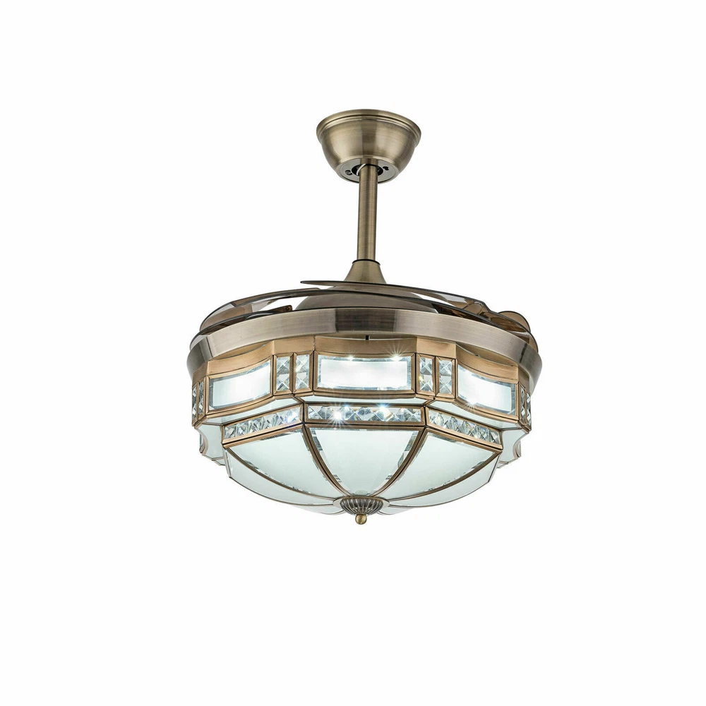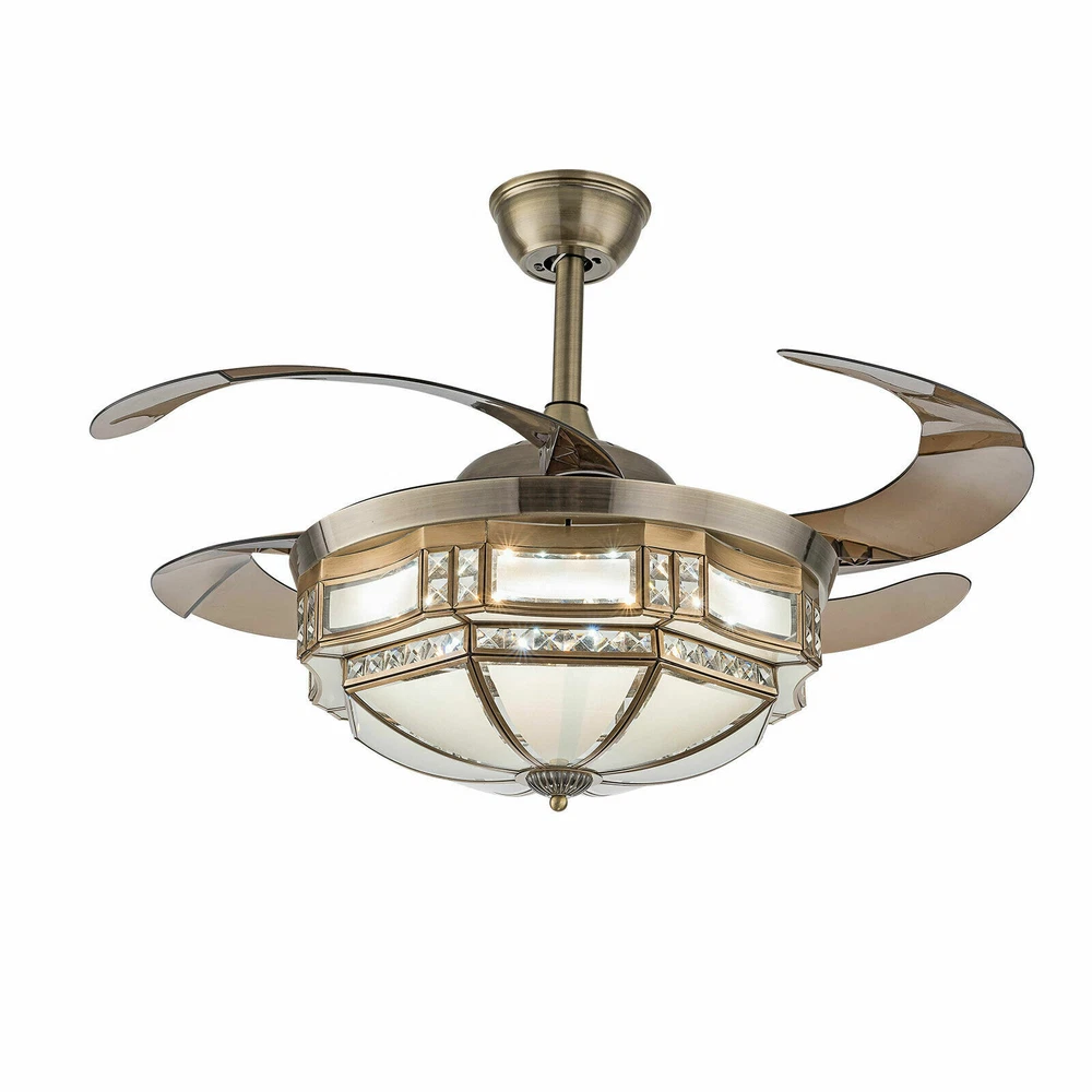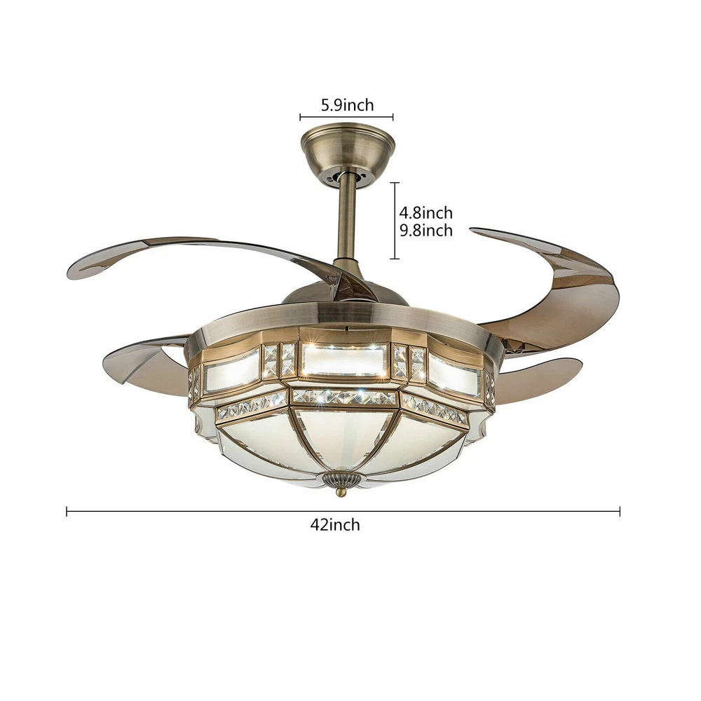 Tiffany 42" Ceiling Fan Light Retro Chandelier Remote Control Retractable Blades