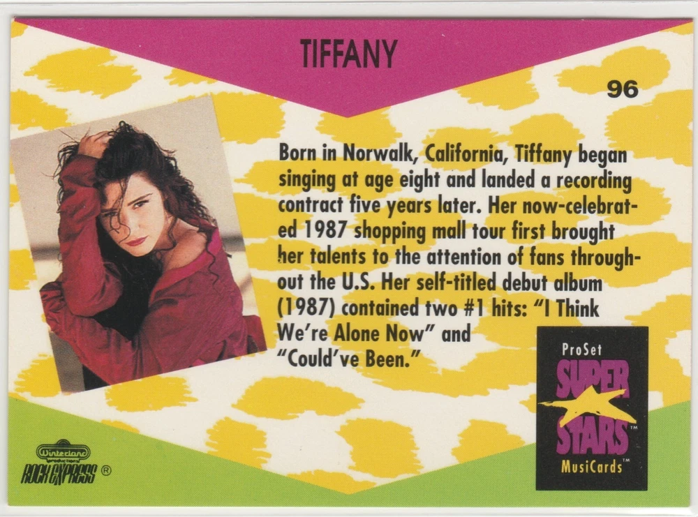 Tiffany #96 1991 ProSet Super Stars MusiCards personal stock images centering of cards may vary compared to listed images condition Excellent or better