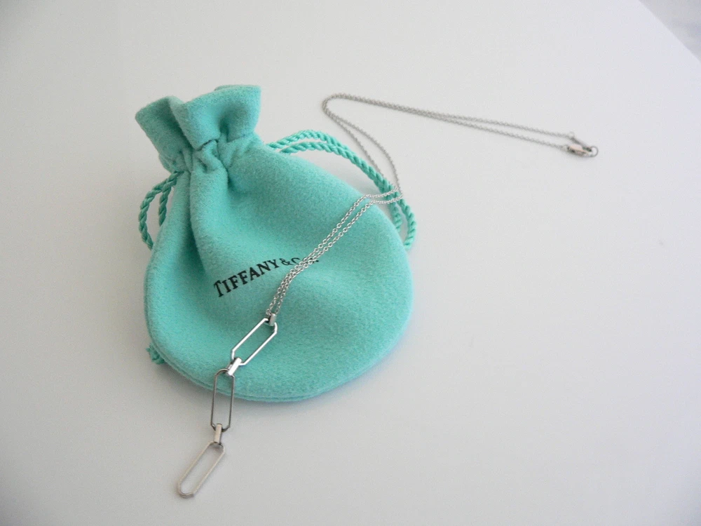 Overview: Looking for a super elegant and yet classic piece that will last a lifetime? Here it is! Offered for sale is a gorgeous Tiffany & Co. 18K White Gold "Paper Clip" / Oval link necklace. Great piece to wear with an open neckline shirt or dress or a dark turtleneck come winter time (but let's not think of this right now :))! The piece is almost like wearing a work of art on your neck - feminine, cosmopolitan, and very alluring. It is a wonderful necklace that fits a lifestyle on the go -- the necklace can be worn to almost any occasion! It is simple, elegant, and classic all rolled into one necklace. Imagine the piece with your professional office attire ... Now imagine it with jeans or weekend wear ... Perfect! It is a classic Tiffany piece to start or add to your collection. The piece is no longer in production and is perfect for the collector. It is in excellent condition. The necklace is fully hallmarked and guaranteed to be 100% authentic. Wonderful present for yourself or anyone you love! Will surely delight! It will come with its Tiffany pouch and box as shown! Perfect and ready for gifting! Particulars: Size & Measurements: The chain is 16.25 inches from end to end. The pendant is 2 inches. Metal & Hallmarks: Tiffany & Co. / 750 (on chain; pendant cannot be removed from chain) 18K white gold Please check out my other unique and interesting Tiffany items on sale.