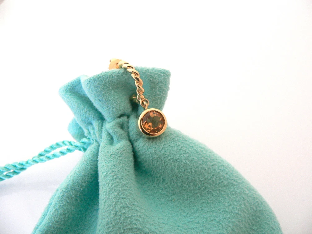 Overview: Everyone needs a signature Tiffany piece! Here is the perfect one just for you. Offered for sale is a wonderful and super pretty Tiffany & Co. 18K Gold Citrine Gemstone Dangling earrings. It is a wonderful pair that fits a lifestyle on the go -- they can be worn to almost any occasion! The earrings are simple, elegant, and classic all rolled into one. They are in excellent condition! Imagine the piece with your professional office attire ... Now imagine it with jeans or weekend wear ... Perfect! It is THE classic Tiffany piece to start or add to your collection. No longer in production, it is perfect for the collector! As always, the item is fully hallmarked and guaranteed to be 100% authentic. Wonderful present for yourself or anyone you love! Will surely delight! The pair will come with its Tiffany pouch as shown! Perfect and ready for gifting! Particulars: Size & Measurements: The earrings dangle approx 0.9 inches. Metal & Hallmarks: T & Co. / 750 (on posts and earring backs) Solid 18K Gold and Gorgeous Citrine Gemstones Please check out my other unique and interesting Tiffany items on sale.