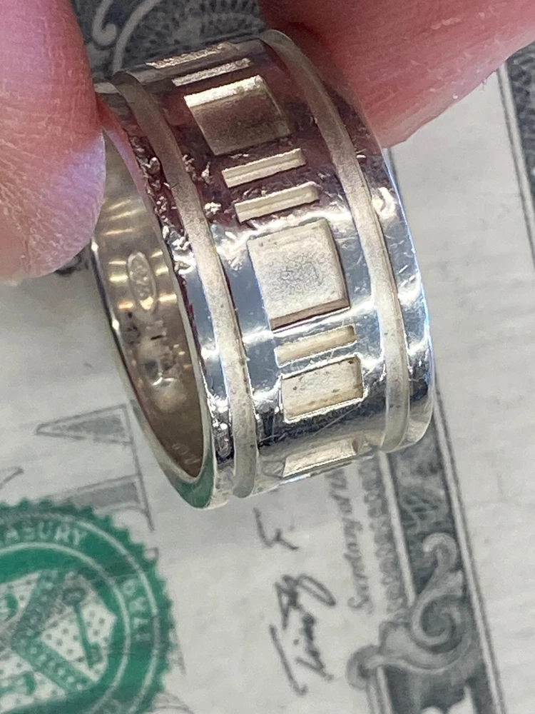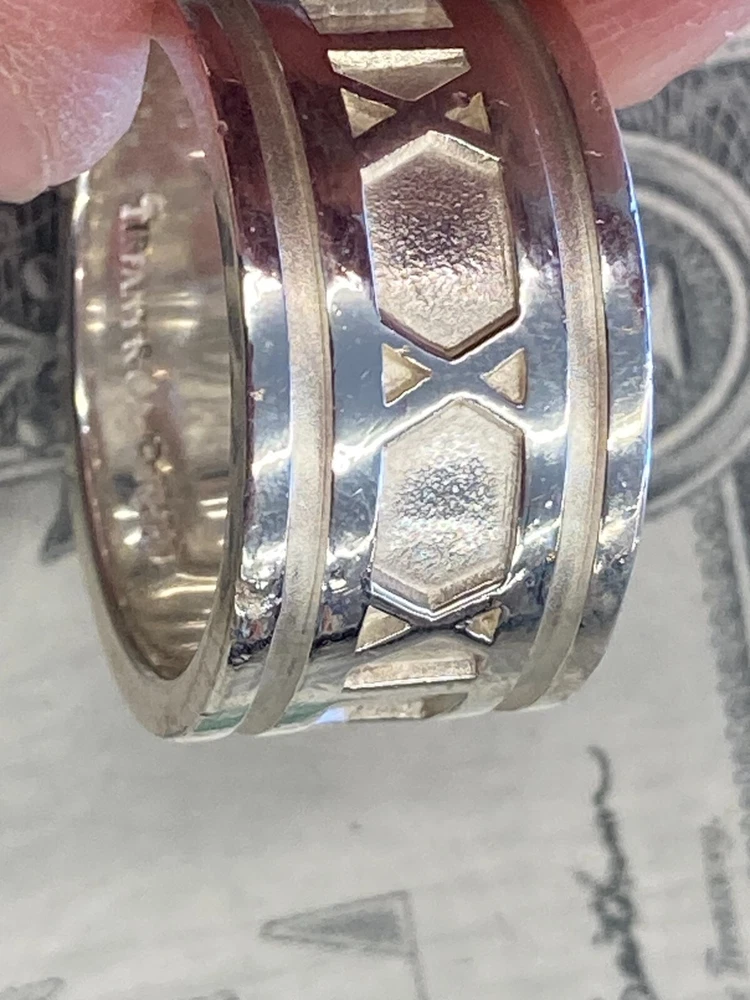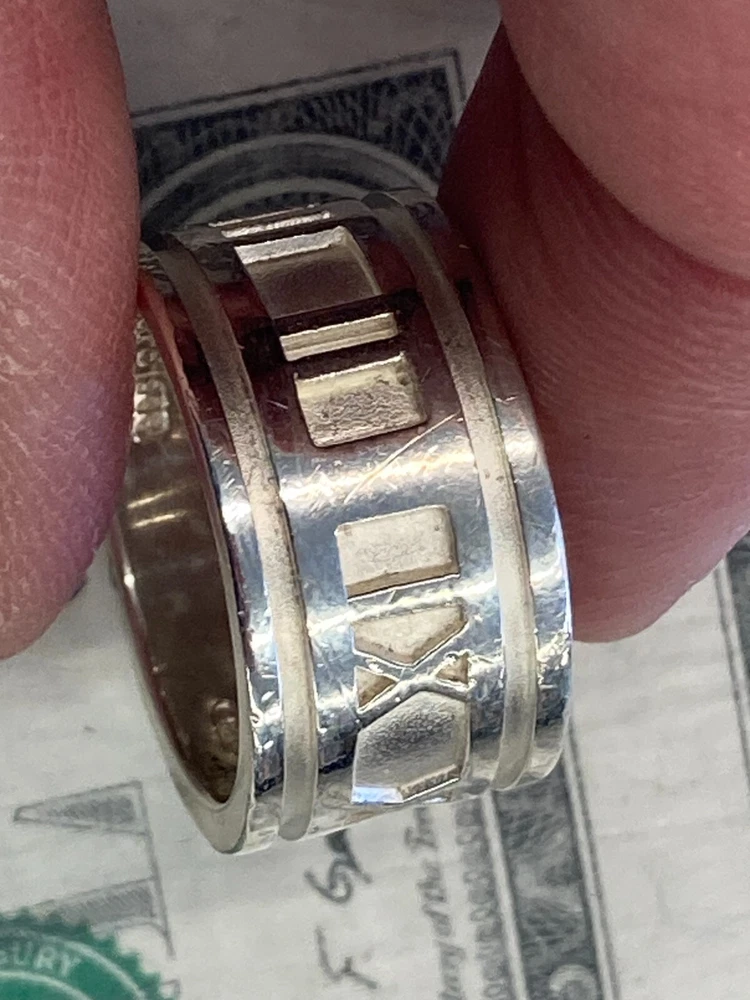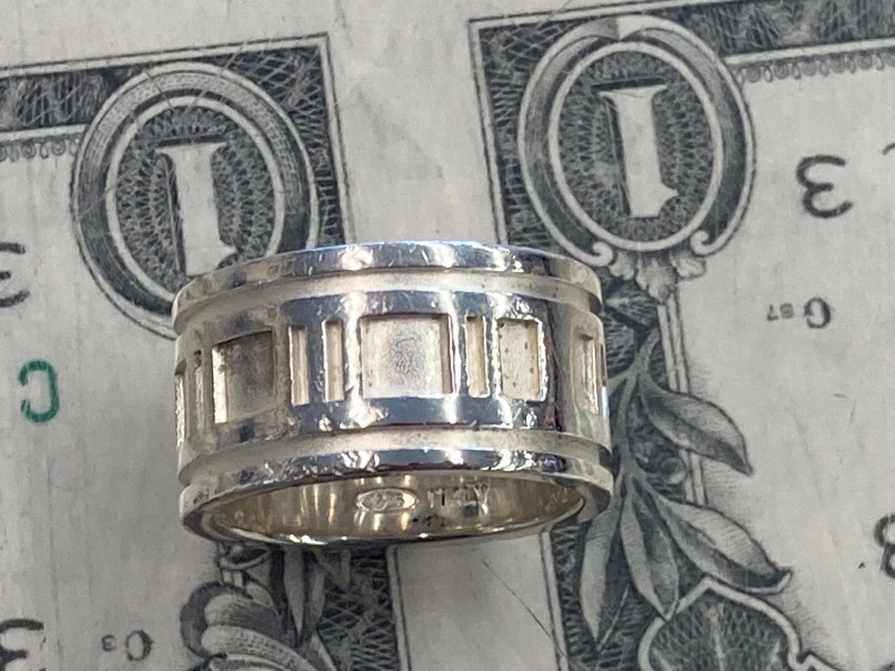 Tiffany & Co. 1995 Sterling Silver .925 Atlas Ring US Size 7.5 includes ring as shown has wear and scratching - see pics heavy wear near III on band - see pics **US Shipping Only** w/ tracking number Check out our Store