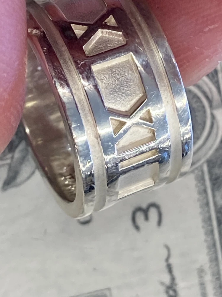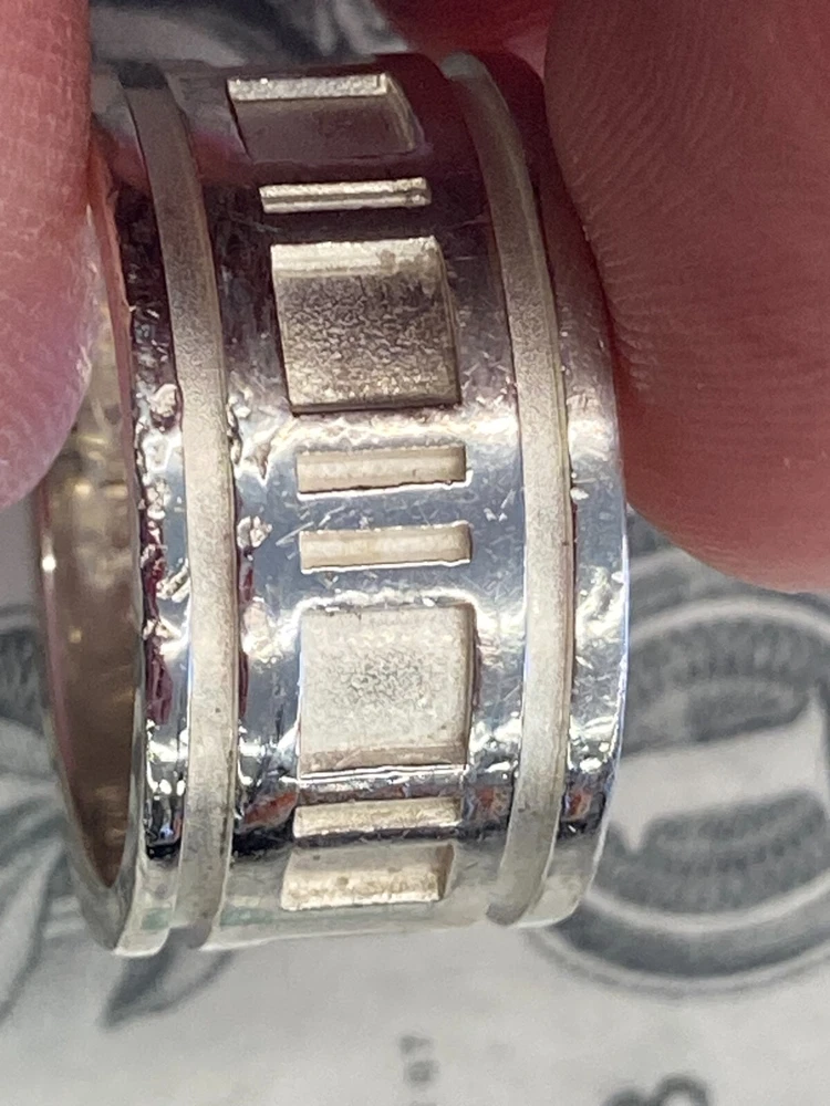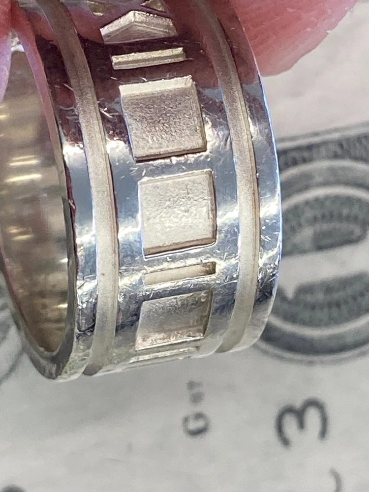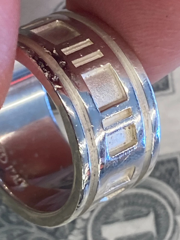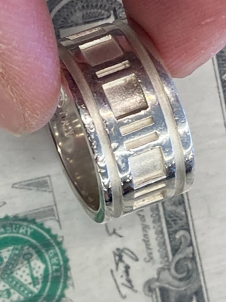 Tiffany & Co. 1995 Sterling Silver .925 Atlas Ring US Size 7.5 includes ring as shown has wear and scratching - see pics heavy wear near III on band - see pics **US Shipping Only** w/ tracking number Check out our Store
