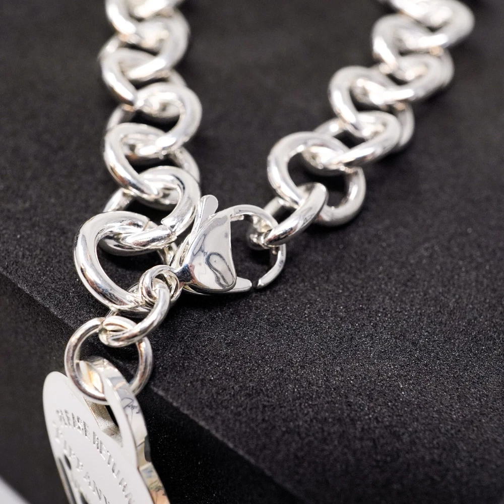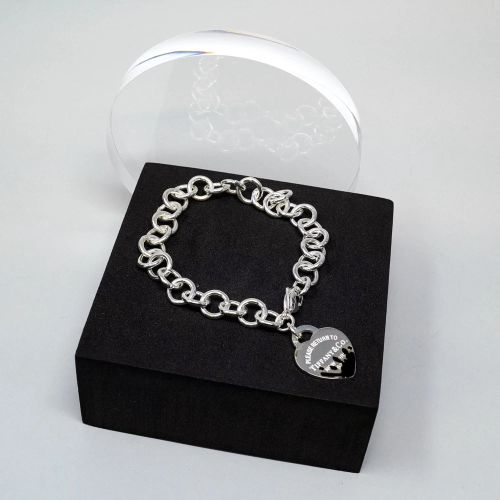 Tiffany & Co. 925 Silver, Black Splash Heart Tag Bracelet 20cm With Gift Box Set