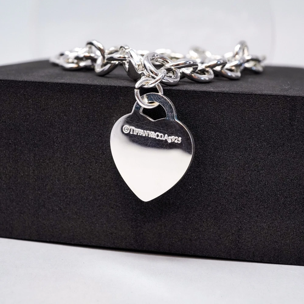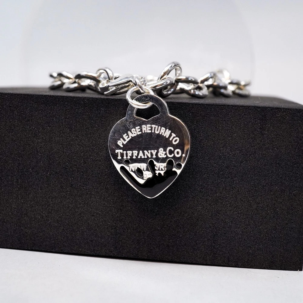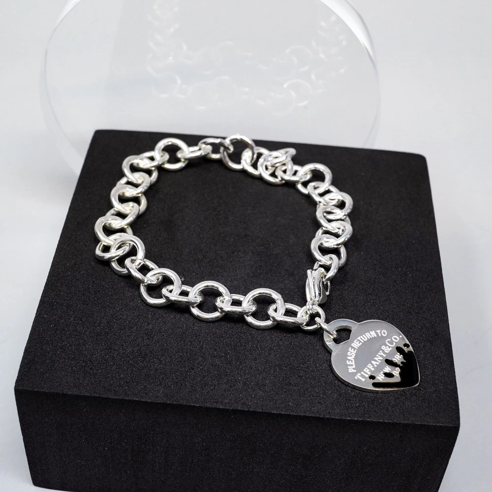 HomeTiffany & Co. 925 Silver, Black Splash Heart Tag Bracelet 20cm With Gift Box Set
