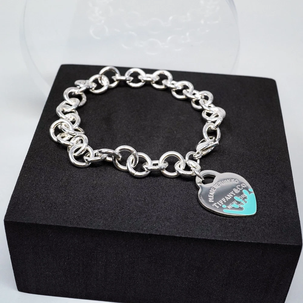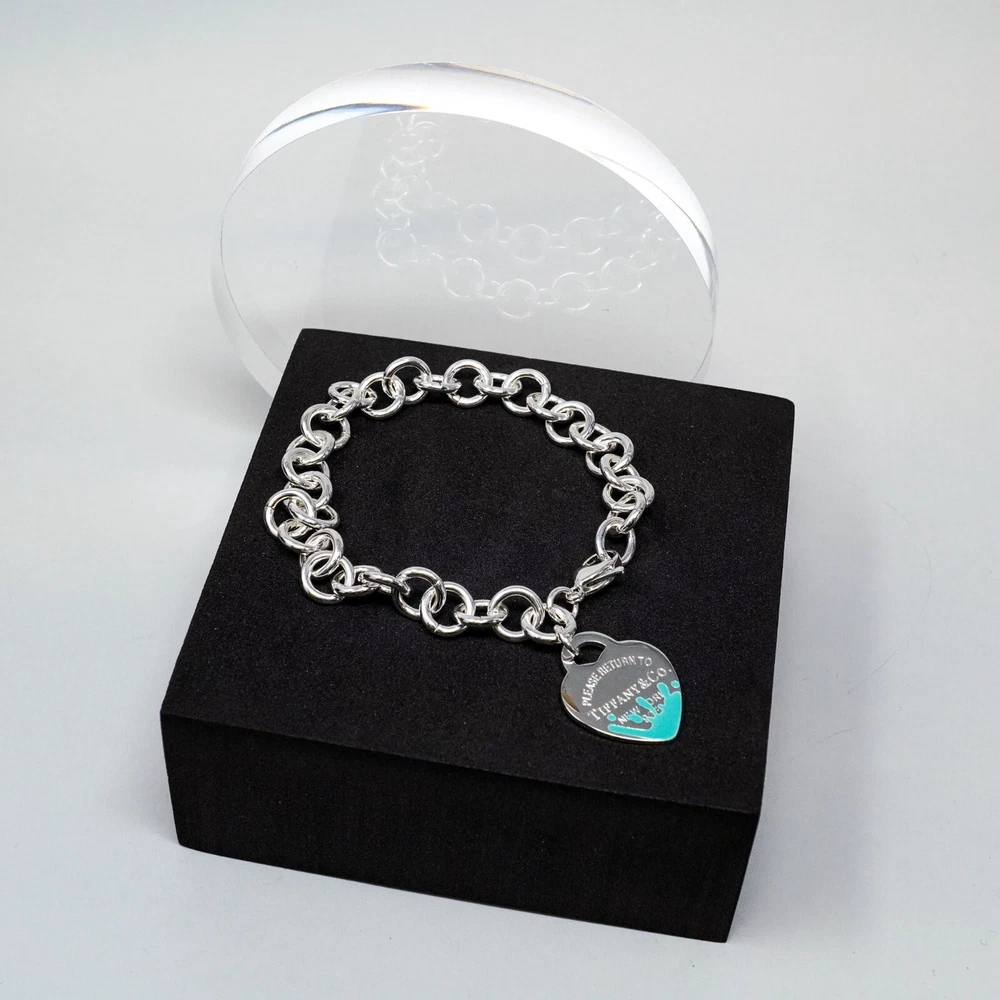 HomeTiffany & Co. 925 Silver, Blue Splash Heart Tag Bracelet 20cm With Gift Box Set