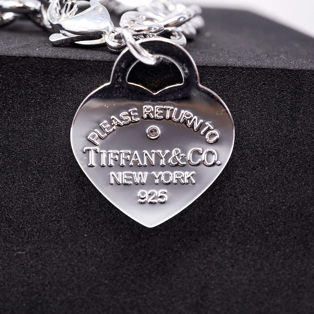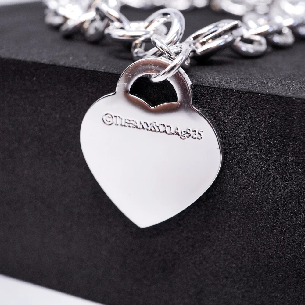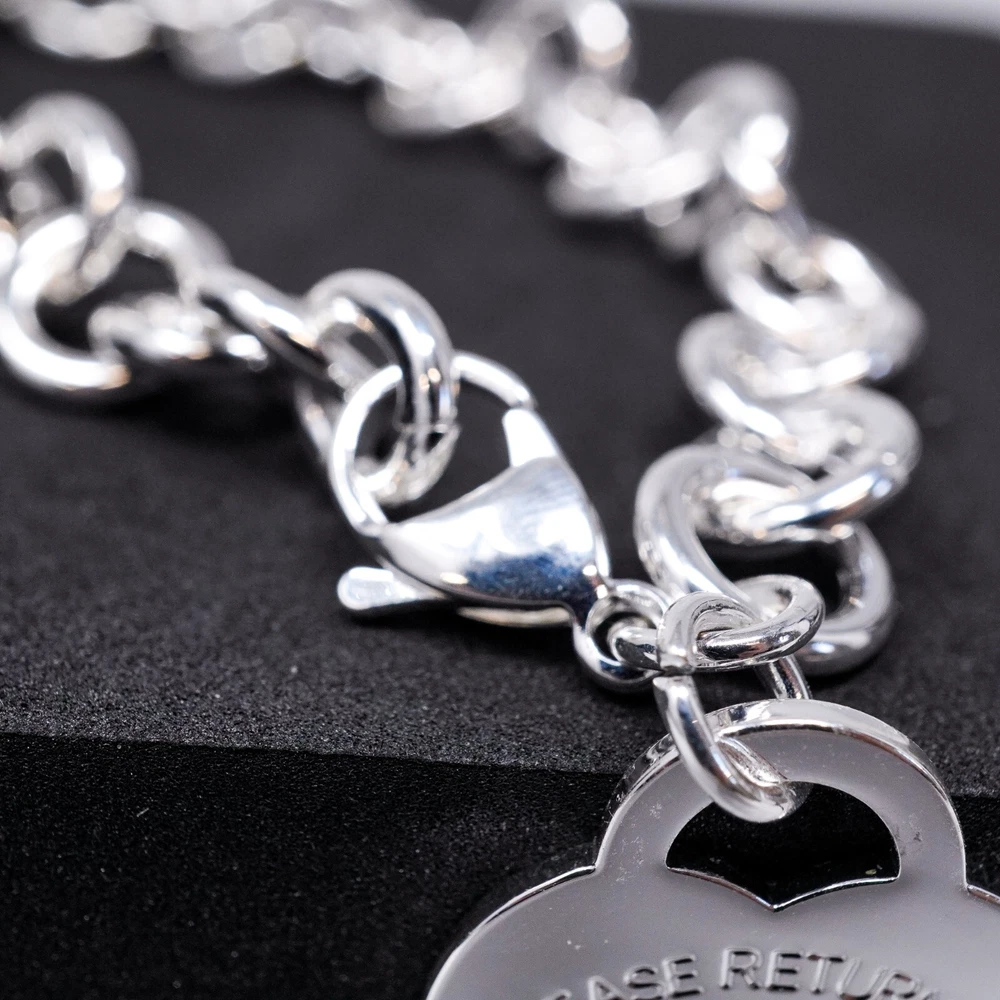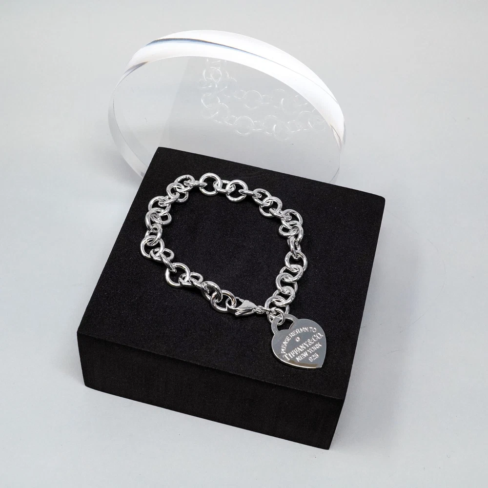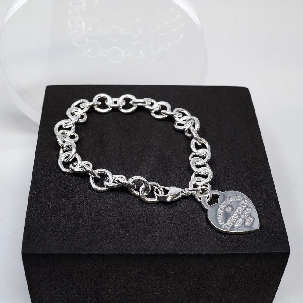 Tiffany & Co. 925 Silver Heart Tag Bracelet 20cm With Gift Box Set
