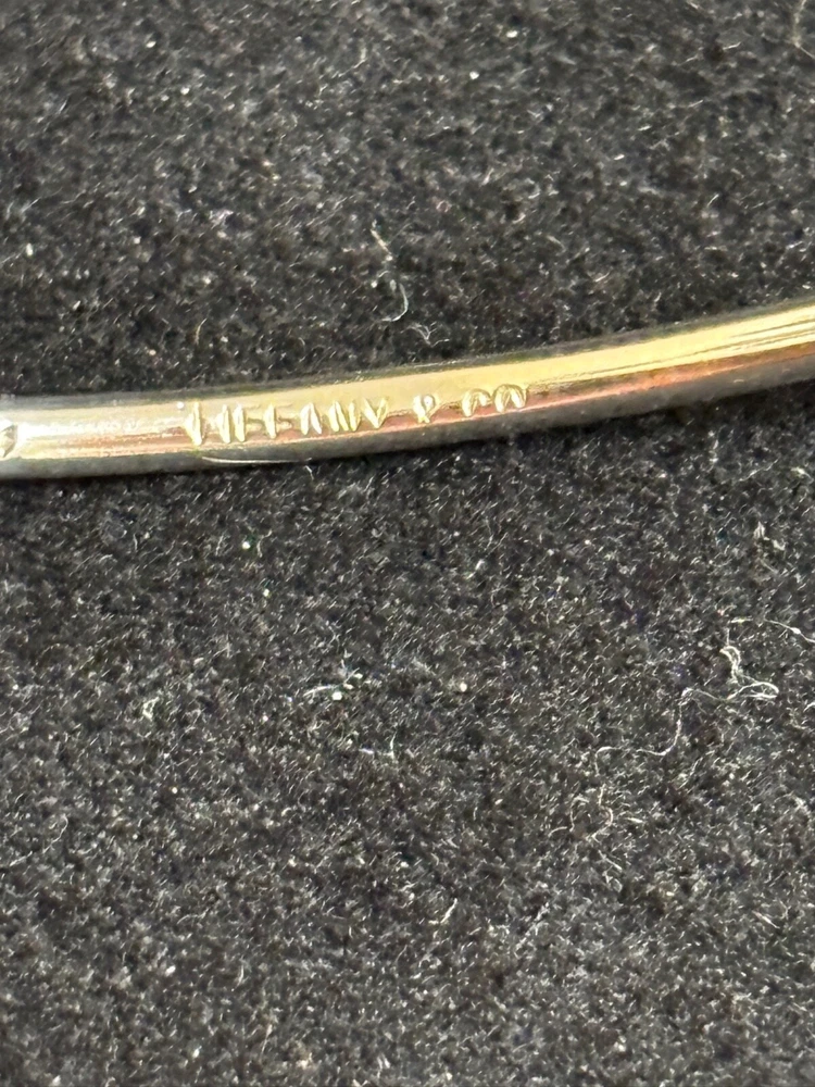 TIFFANY & CO. STERLING SILVER 18K GOLD OPEN HEART BANGLE BRACELET W/ POUCH 7.5”