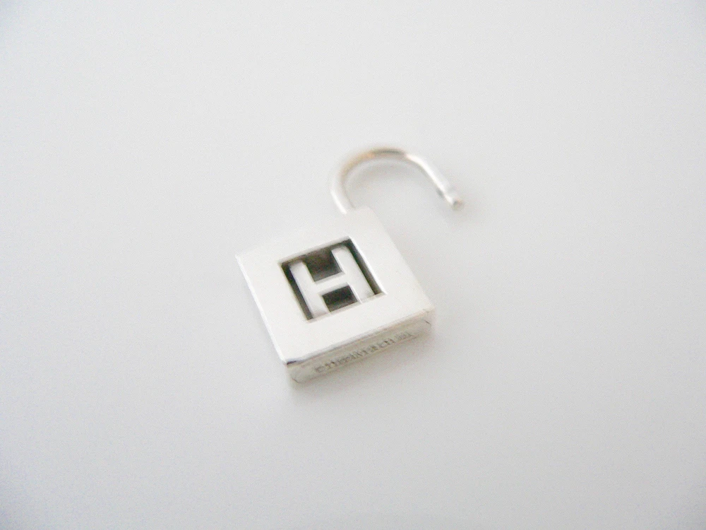 Does the Alphabet H have a special significance for you? You're in luck! You just found a wonderful Tiffany piece for yourself or that special person! Offered for sale is a wonderful Tiffany & Co. Sterling Silver Alphabet H padlock pendant / charm. The padlock opens and closes. Super versatile charm that you can add on to any necklace or bracelet ... Perfect item to show off your "Tiffany" style! The piece is simple, elegant, and classic all rolled into one item. It is a wonderful Tiffany piece to start or add to your collection. As always, the item is hallmarked and guaranteed to be 100% authentic. Particulars: The charm is a tad less than 1 inch long (including the U shape). Metal & Hallmarks: Tiffany & Co. / 925 Solid 925 sterling silver Please check out my other unique and interesting Tiffany items on sale.