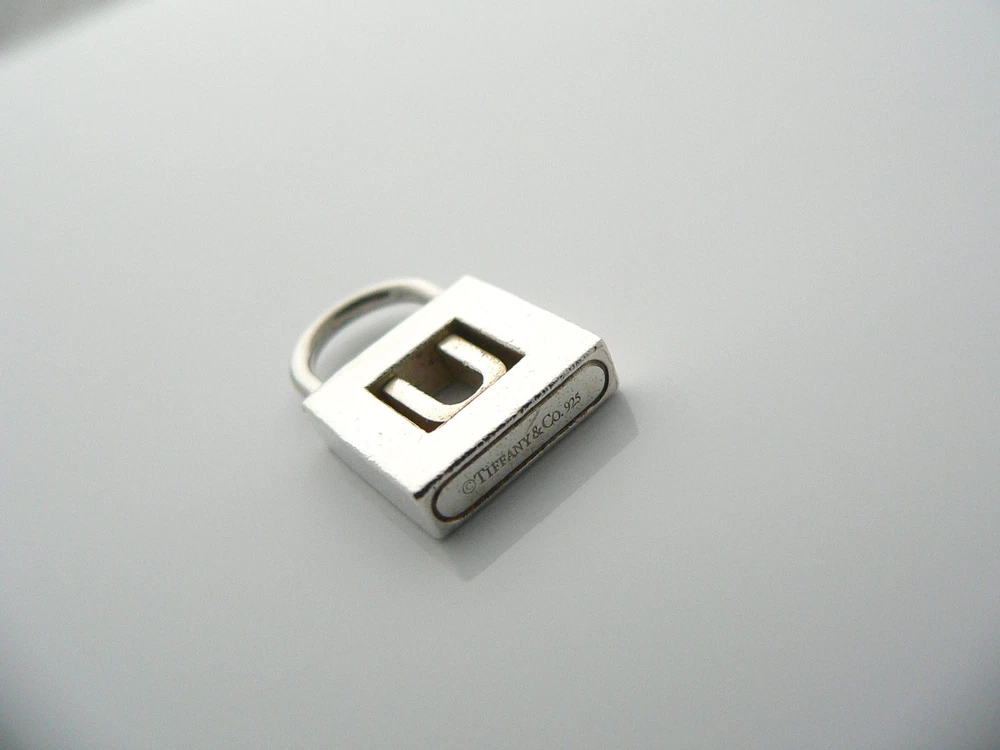 Does the letter "U" have a special significance for you? You're in luck! You just found a wonderful Tiffany piece for yourself or that special person! Offered for sale is a wonderful Tiffany & Co. Sterling Silver Alphabet "U" padlock pendant / charm. The padlock opens and closes. Super versatile charm that you can add on to any necklace or bracelet ... Perfect item to show off your "Tiffany" style! The piece is simple, elegant, and classic all rolled into one item. Please note - it is pre-owned and has scratches. It is a wonderful Tiffany piece to start or add to your collection. As always, the item is hallmarked and guaranteed to be 100% authentic. Particulars: The charm is a tad less than 1 inch long (including the U shape). Metal & Hallmarks: Tiffany & Co. / 925 Solid 925 sterling silver Please check out my other unique and interesting Tiffany items on sale.
