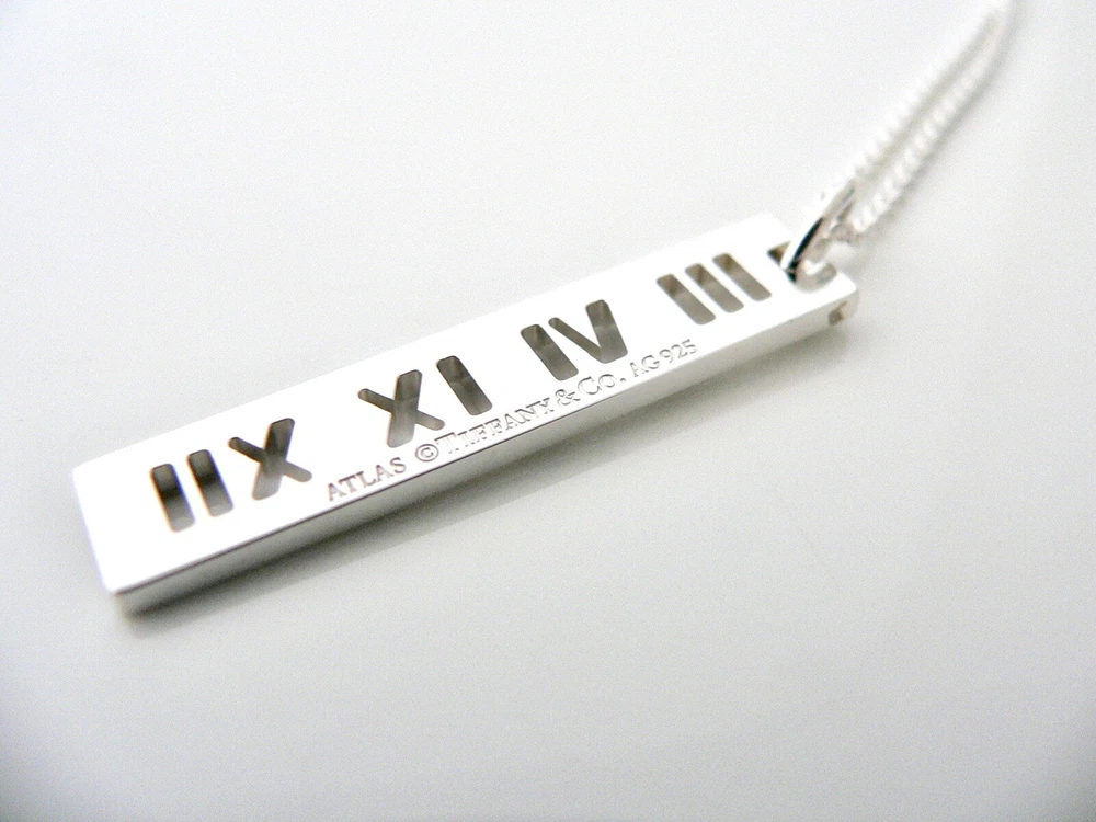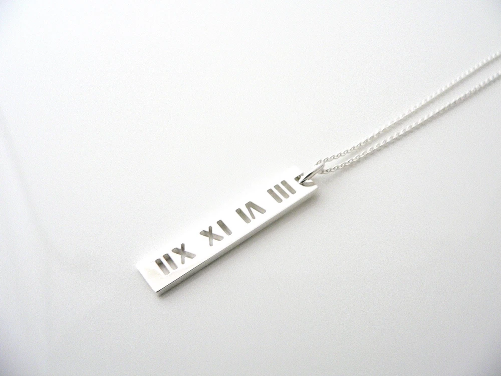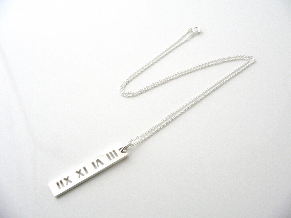 Overview: Offered for sale is a wonderful Tiffany classic. Whether you are just starting your Tiffany collection or are thinking of adding another piece, this one is perfect for you. Tiffany & Co.'s Sterling Silver Atlas Stencil Bar necklace is a Tiffany classic that will never go out of style. It will most certainly be a piece that you will turn to over and over again, so it is great value for your money! It is a wonderful necklace that fits a lifestyle on the go -- the necklace can be worn to almost any occasion! It is simple, elegant, and classic all rolled into one necklace. Imagine the piece with your professional office attire ... Now imagine it with jeans or weekend wear ... Perfect! As always, the item is fully hallmarked and guaranteed to be 100% authentic. Wonderful present for yourself or anyone you love! Will surely delight! Particulars: Size & Measurements: The necklace is 20 inches from end to end. Metal & Hallmarks: Atlas / Tiffany & Co. / 925 / AG Solid 925 sterling silver Please check out my other unique and interesting Tiffany items on sale.
