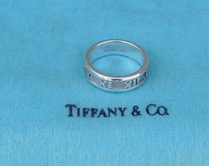 Tiffany & Co. Atlas Ring Roman Numeral. Sterling Silver 925. Size 7 1/2 US. No box or pouch. All Our Tiffany & Co. Items are Authentic.
