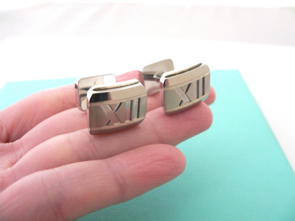 Overview: Offered for sale is a pair of very rare, elegant and versatile Tiffany and Co. Sterling Silver & Titanium Atlas Cuff Links. The pair will certainly be something that will be used often. Beautiful piece of "jewelry" that every man or woman can appreciate! Perfect surprise for that someone special! The links are fully hallmarked and guaranteed to be 100% authentic. Wonderful present for yourself or anyone you love! Will surely delight! Particulars: Metal & Hallmarks: Atlas / T & Co. / 925 / Ti (Titanium) Solid 925 sterling silver Please check out my other unique and interesting Tiffany items on sale.